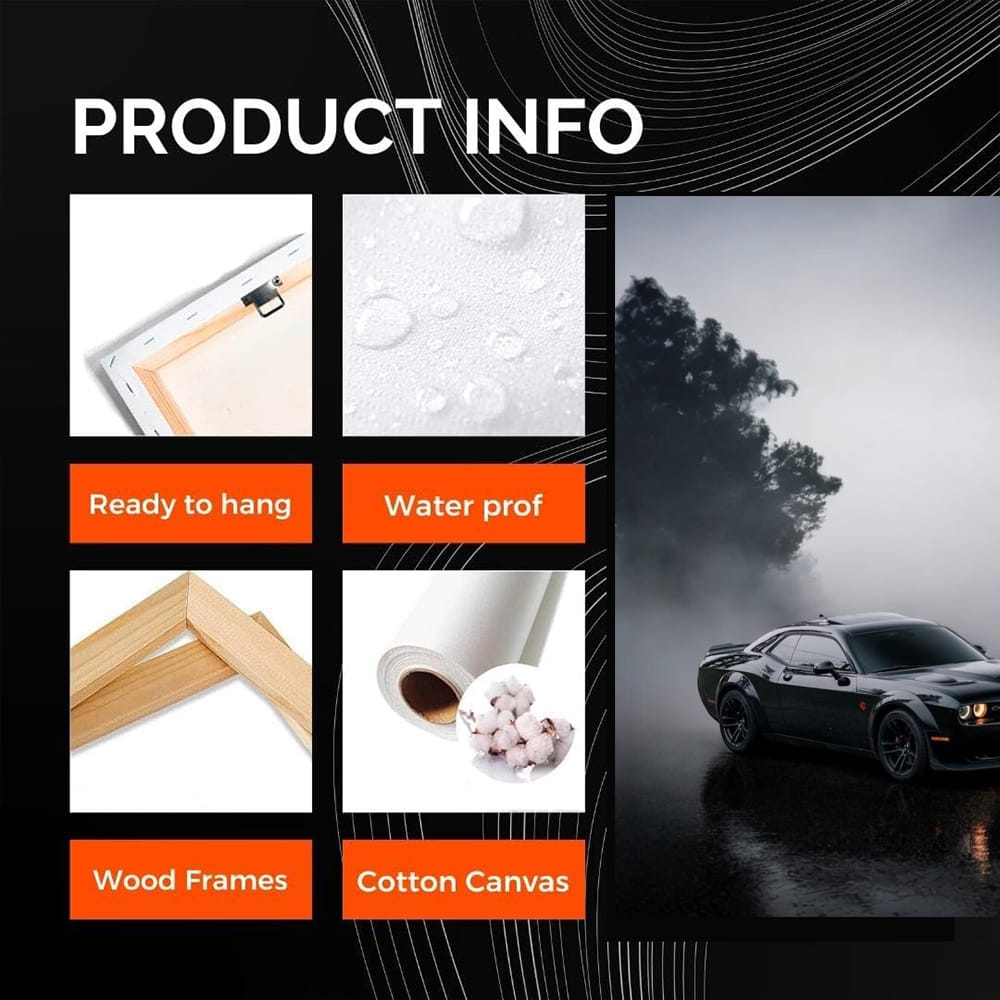 Hey, bro, check out this painting - "Dodge in the fog". This is wall art for real car fans. The black monster, hidden in the haze, seems to roar: "I'm here to tear up the asphalt!" This poster is the perfect addition to a real man's garage. See more from the collection: Dodge Art