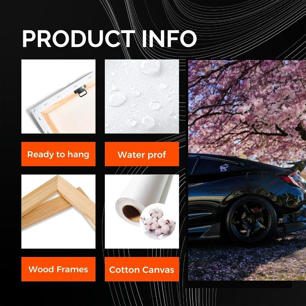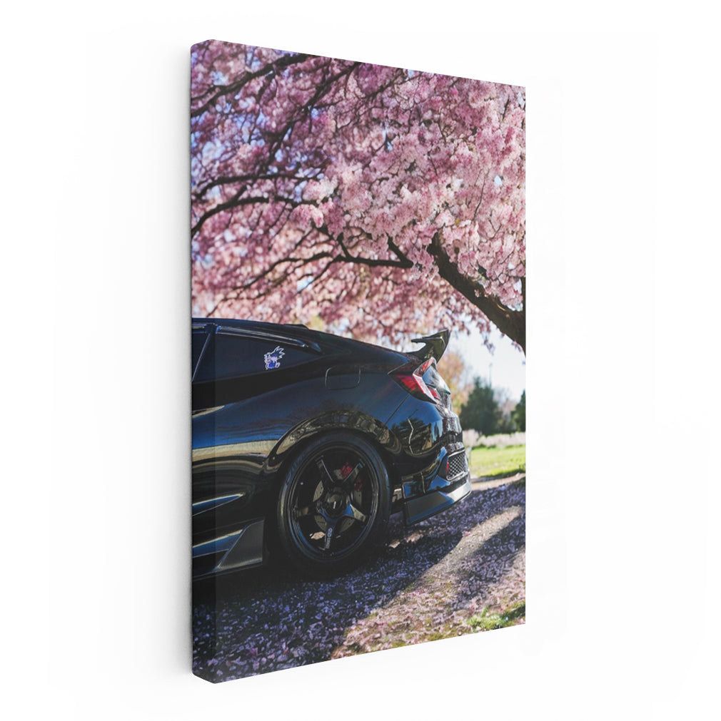 Black Honda Civic Under Cherry Blossoms - Elegant and Timeless Wall Art
