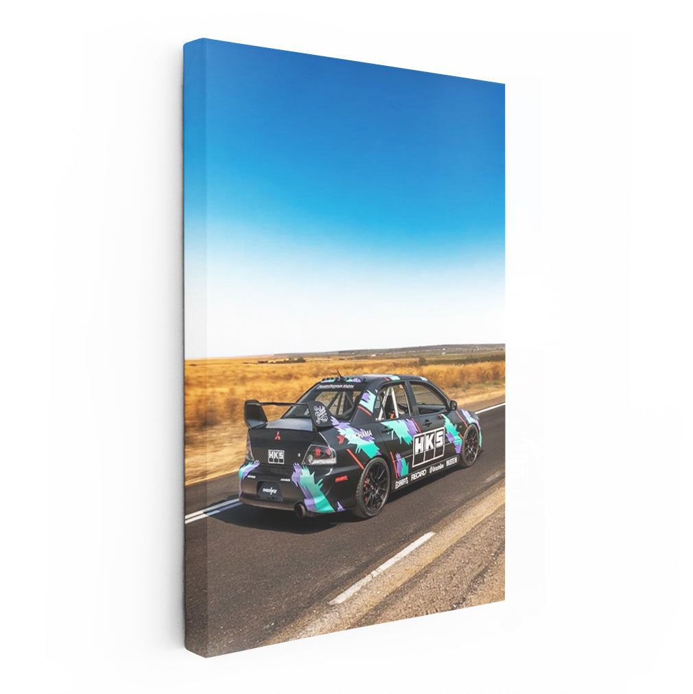 Black Mitsubishi Lancer Cruising Highway - Sleek and Bold Wall Art