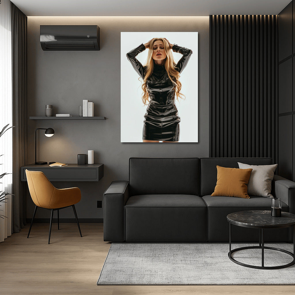 Blonde in Black Dress: Mysterious Elegance Wall Art