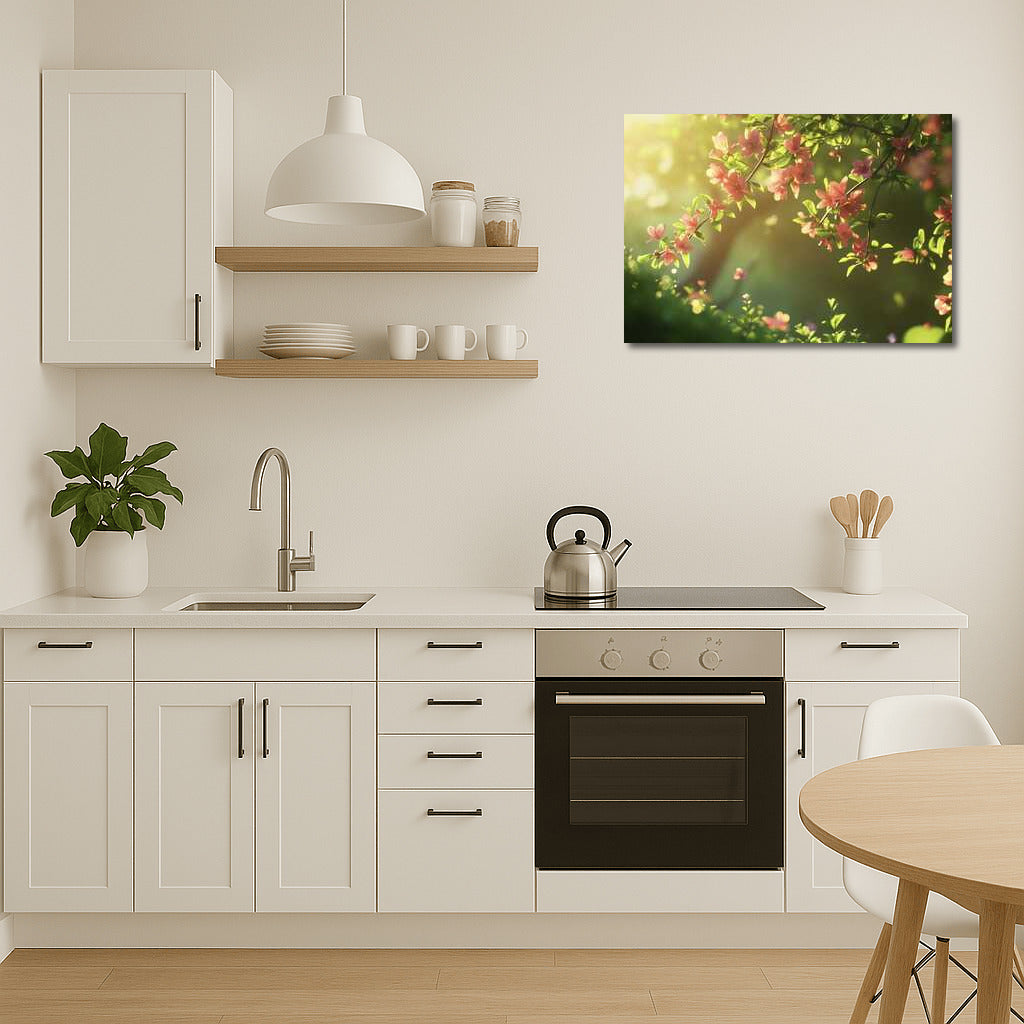 Azalea blooming garden comes to life on a poster. Delicate flowers create living wall art for the coziness of your space. See more from the collection: Flowers Art