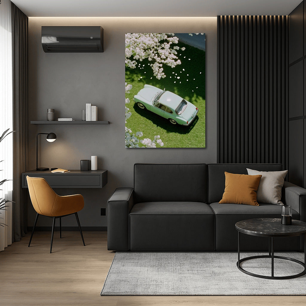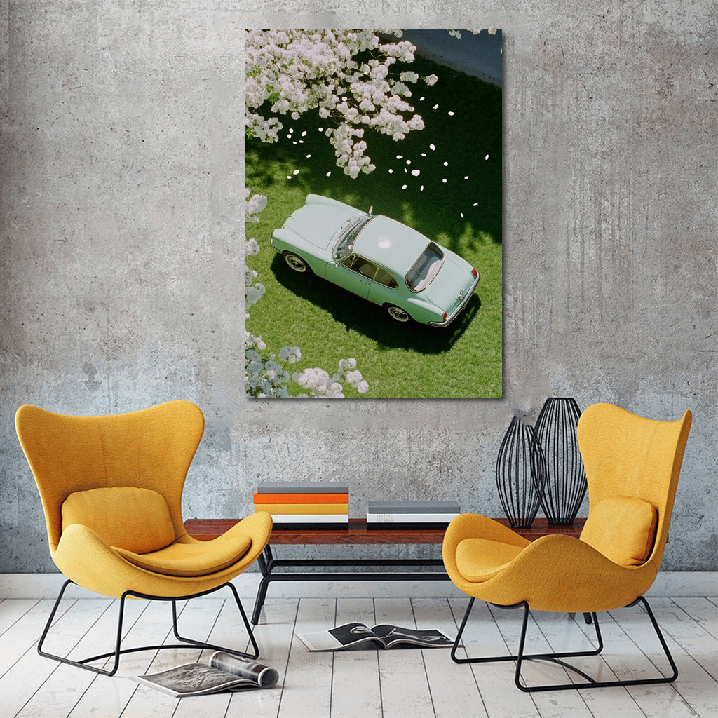 A delicate poster of a retro Jaguar surrounded by flowering branches. Turn your wall into a work of art with this classic! See more from the collection: Mixed Wall Art