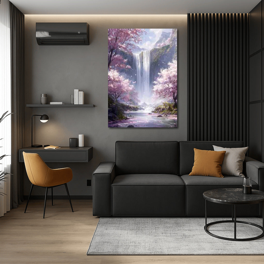 Immerse yourself in a fairy tale with the Nature Landscapes poster. A waterfall among flowering trees is the perfect wall art for the soul. See more from the collection: Nature & Landscapes Art