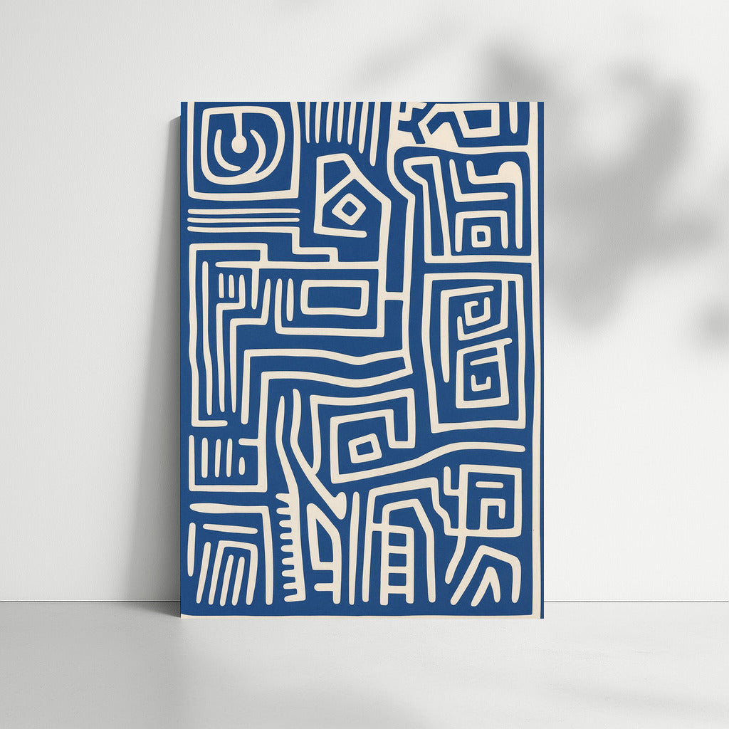Blue and White Labyrinth of Tranquility: Minimalism and Harmony Wall Art