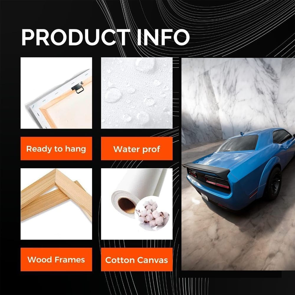 This poster is a beast of a wall art. The Dodge in blue marble is like a car lover's dream come to life on the wall. A cool painting that will give you goosebumps, it has speed and power in every detail. See more from the collection: Dodge Art