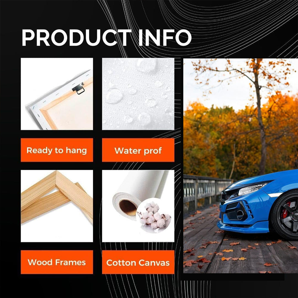 What a poster! Honda Civic against the backdrop of an autumn park - just fire! This car in blue, like a painting, attracts the eye and reminds of freedom on the road. Wall art for true car lovers who appreciate style and power. See more from the collection: Honda Art