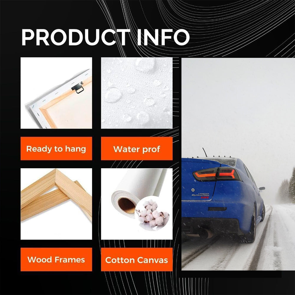Dude, this wall art with a blue Mitsubishi Lancer drowning in snow is mind-blowing! The poster is so tempting with its bold style. This is not just a painting - it is a challenge to all boring cars. A gift for true fans of speed and extreme sports! See more from the collection: Mitsubishi Art