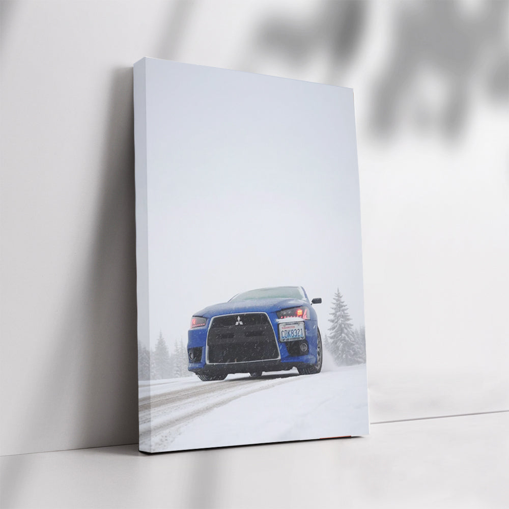 Blue Mitsubishi Lancer in Snow - Reliable and Adventurous Wall Art