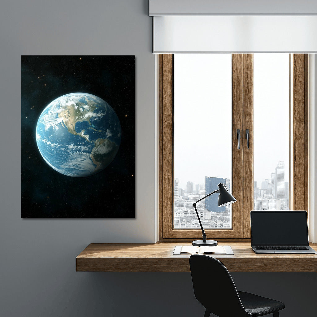 Earth from Afar poster: majestic wall art that captures the beauty of our planet in the vastness of space. See more from the collection: Space & Astronomy Art