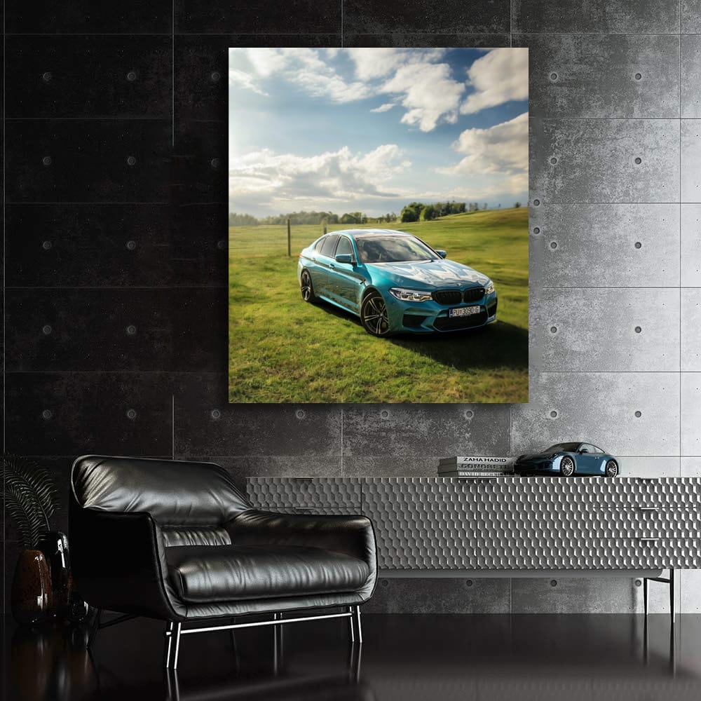 BMW F90 M5 on Grass Field - Pre-Restyling Powerhouse Wall Art