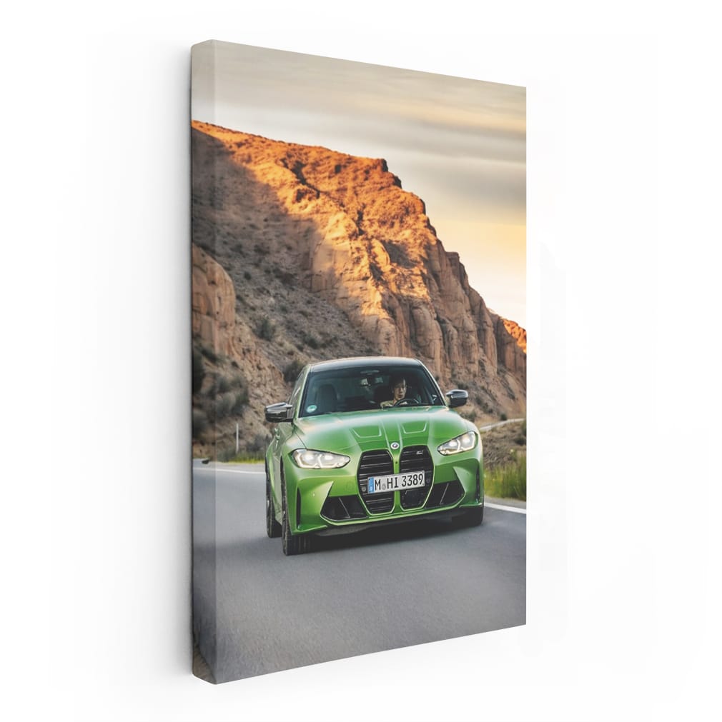 Dude, we have a wild poster here — BMW M3 G20 in a green snake of mountains! This beast seems to live on the wall, ready to break away. Wall art for those who breathe gasoline and dream of speed. Just a bomb, not a painting! See more from the collection: BMW 3 Series Art