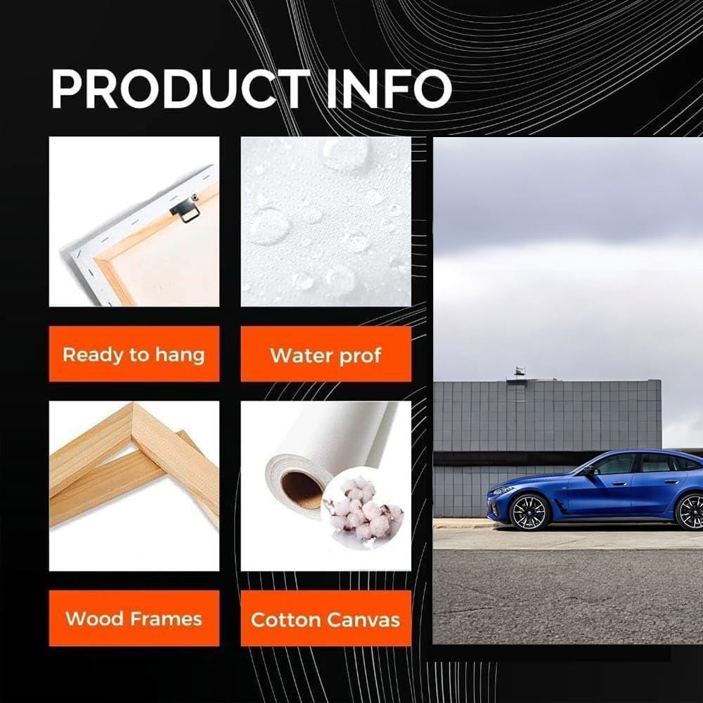This poster of the BMW i4 M50 in bright blue is just the bomb! A real masterpiece of wall art for those who appreciate speed and power. This painting seems to say: "I'm here to tear up the asphalt and conquer the roads!" See more from the collection: BMW 4 Series Art