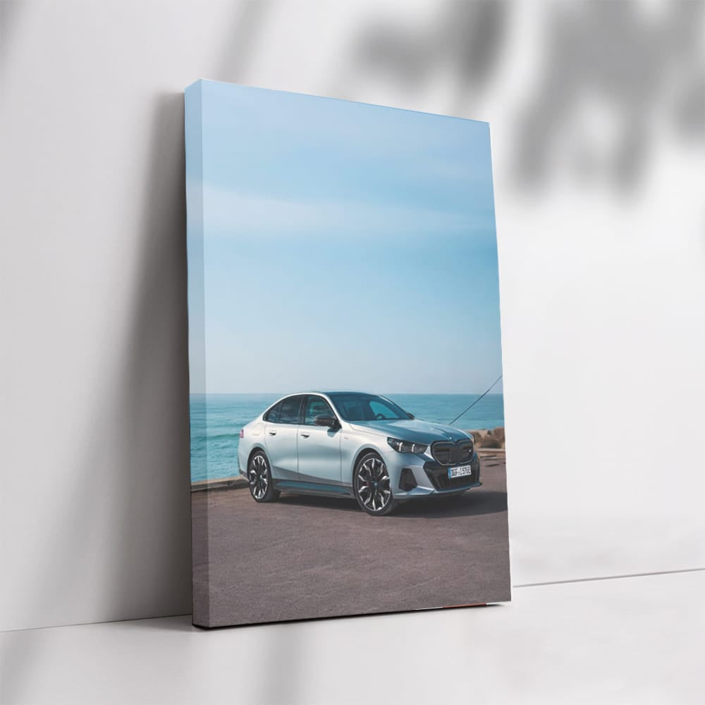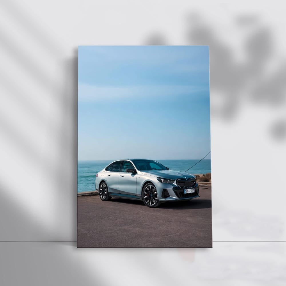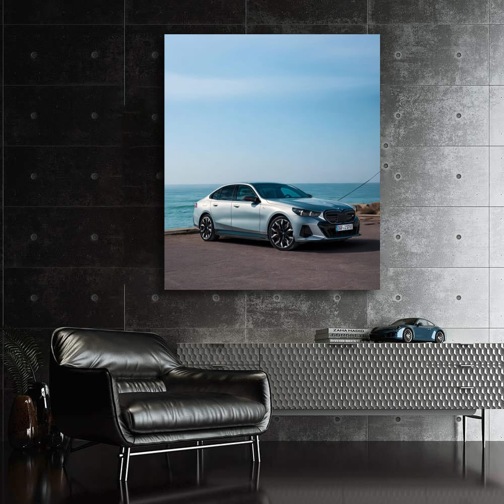 Bro, check out this BMW i5 poster in grey. It's not just a car, it's a piece of wall art. A painting that says, "I'm here to dominate." Your wall will look like a race track with this poster. See more from the collection: BMW 5 Series Art