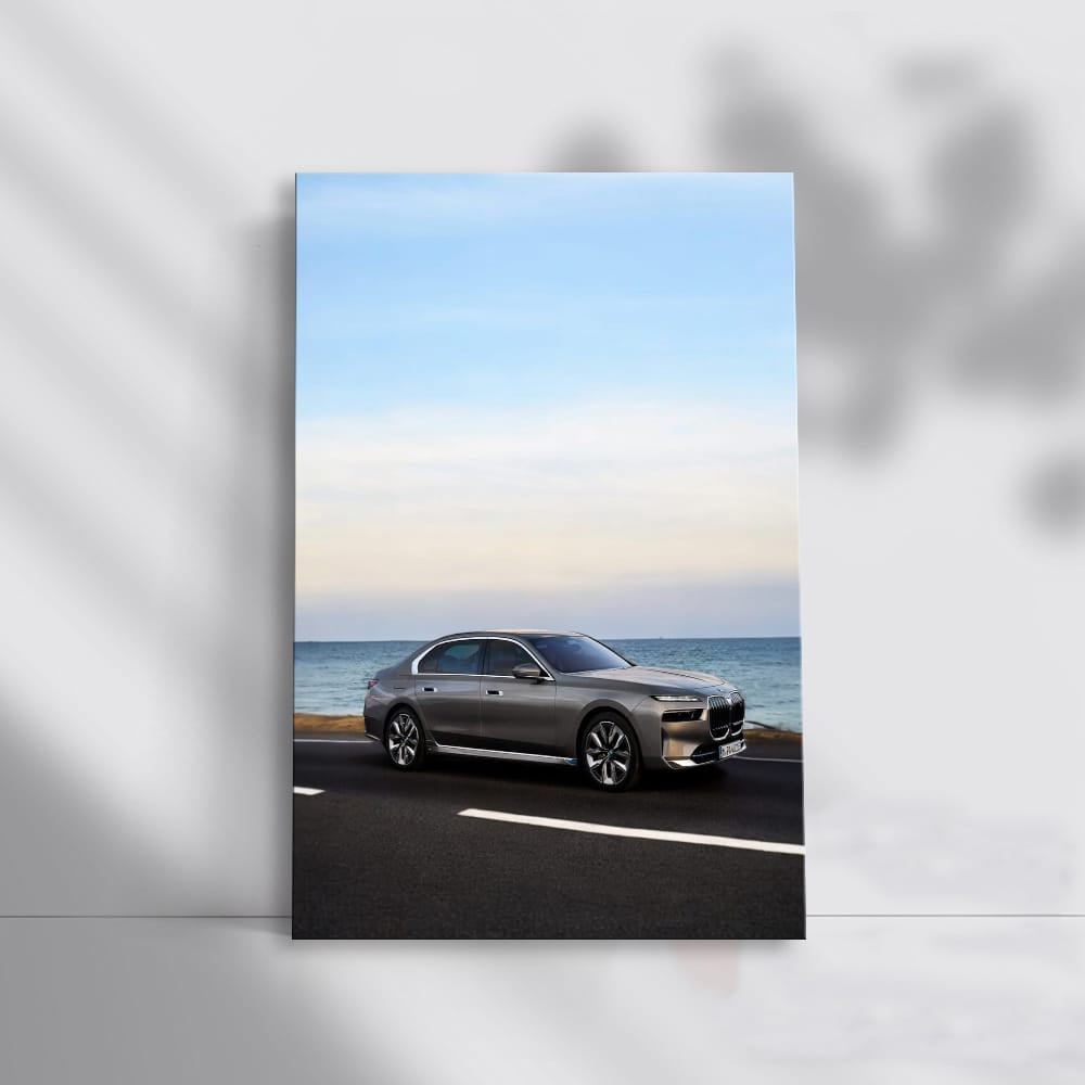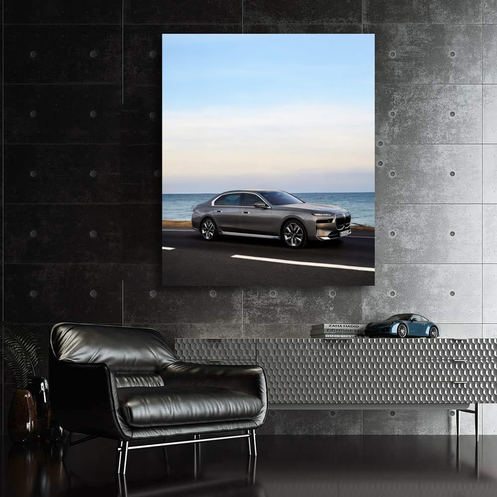 Bro, check out the BMW i7 poster, like lightning on the wall! This painting is just like a dream car that bursts into your mind. The wall art, like the roar of the engine at maximum, immerses you in the world of speed and luxury. Ideal for car fans! See more from the collection: BMW 7 Series Art