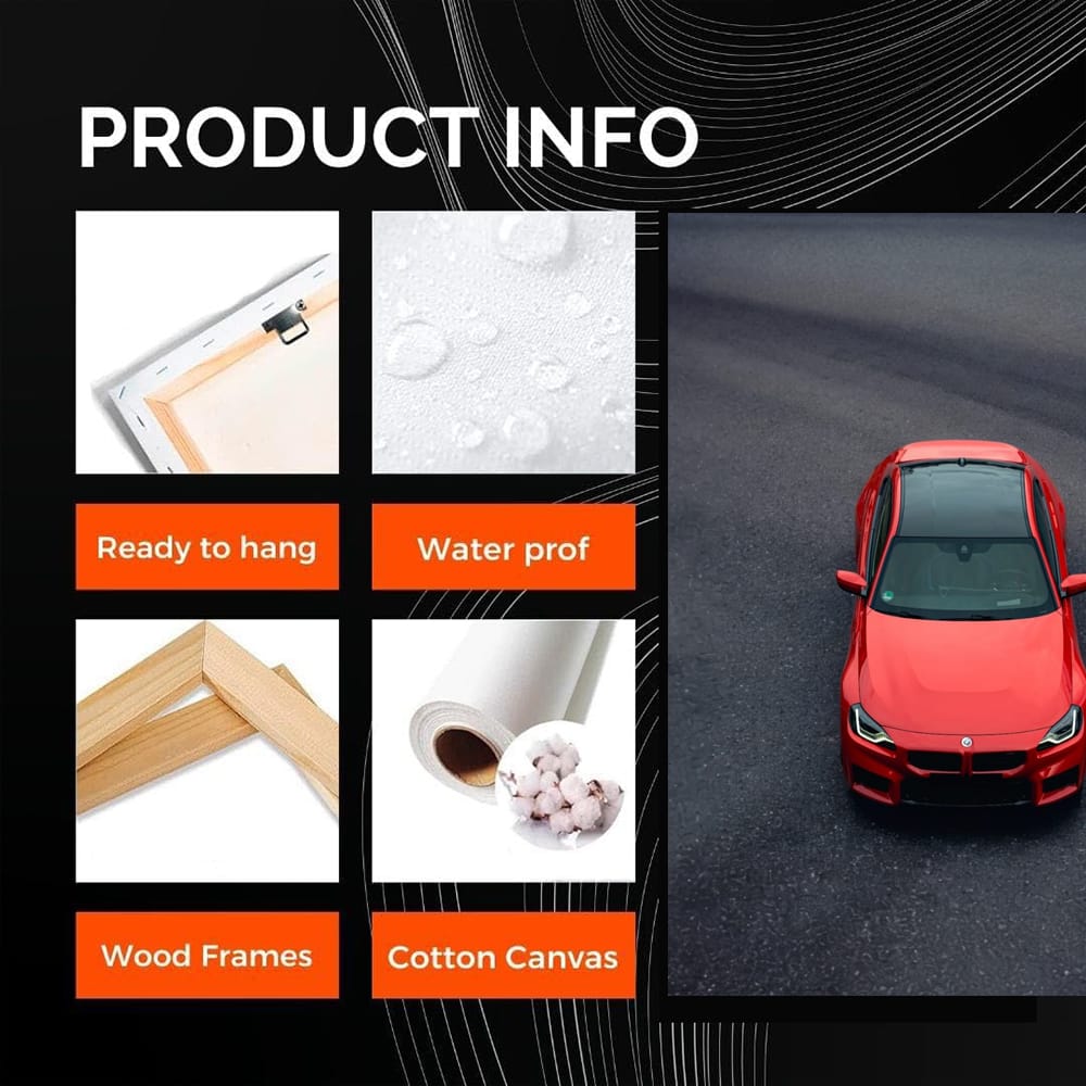 Hey bro! painting this: a poster of a BMW M2 in bold red hanging on the wall. This wall art screams power and style. The painting energizes and reminds you of speed and adrenaline. A racing gun in your home! See more from the collection: BMW 2 Series Art
