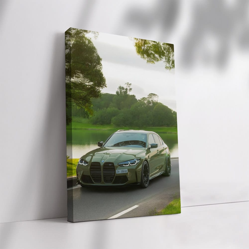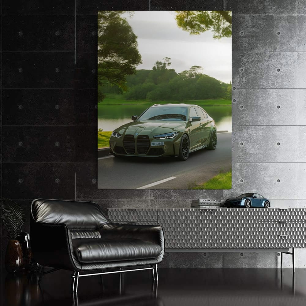 Yo, bro! Check out this wild poster: BMW M3 Competition Sedan in green paint. This is not just a painting, this is a real wall art for a garage king. Such a car on the wall is a challenge to everyone who does not know what power and style are! See more from the collection: BMW 3 Series Art