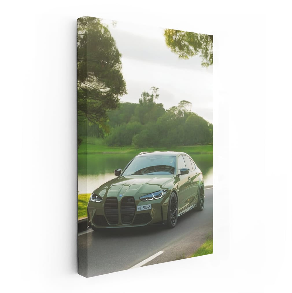 BMW M3 G80 in Military Green by Lake - Bold Elegance Wall Art