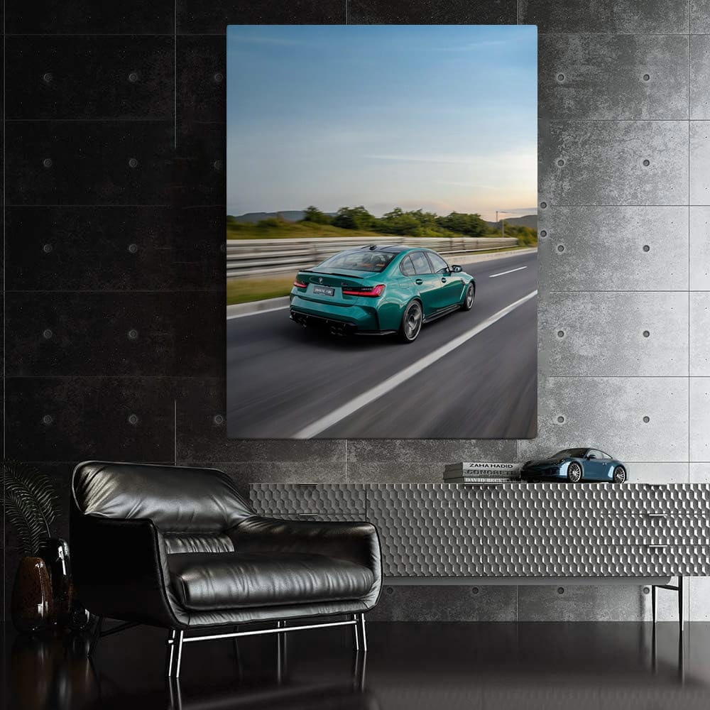 BMW M3 Green Sedan: Sleek and Powerful Driving Machine Wall Art