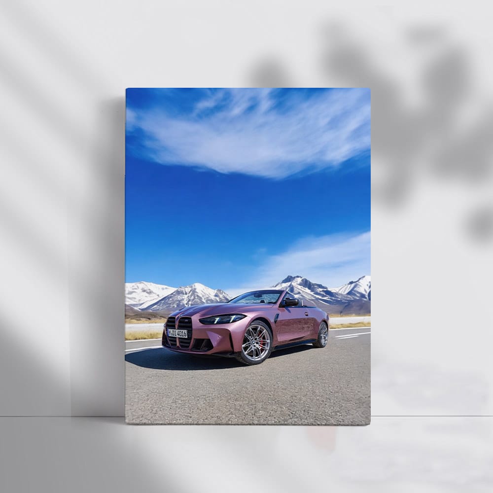 Overall, this poster of the BMW M4 Competition Convertible in Velvet Orchid metallic is just the bomb! It's like a painting of speed and style on the wall. This wall art charges you with adrenaline. This car is pure aggression and elegance, which is hard to compete with. See more from the collection: BMW 4 Series Art