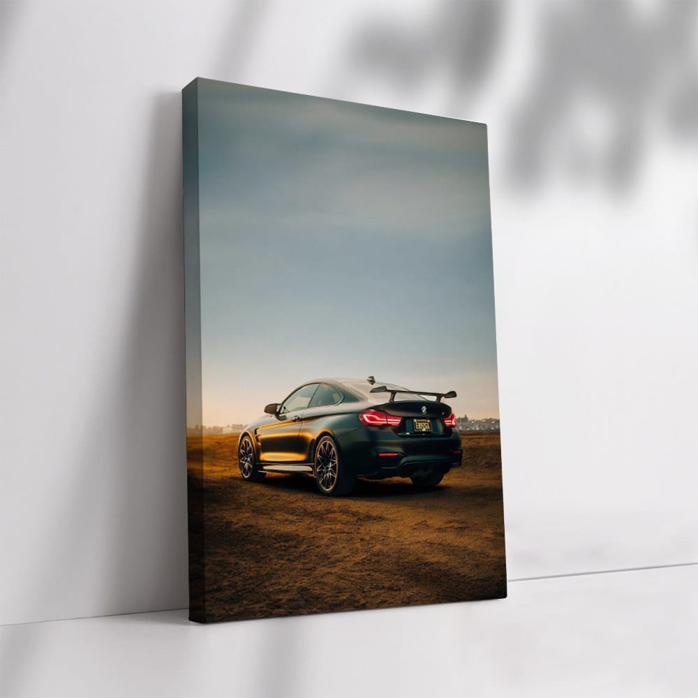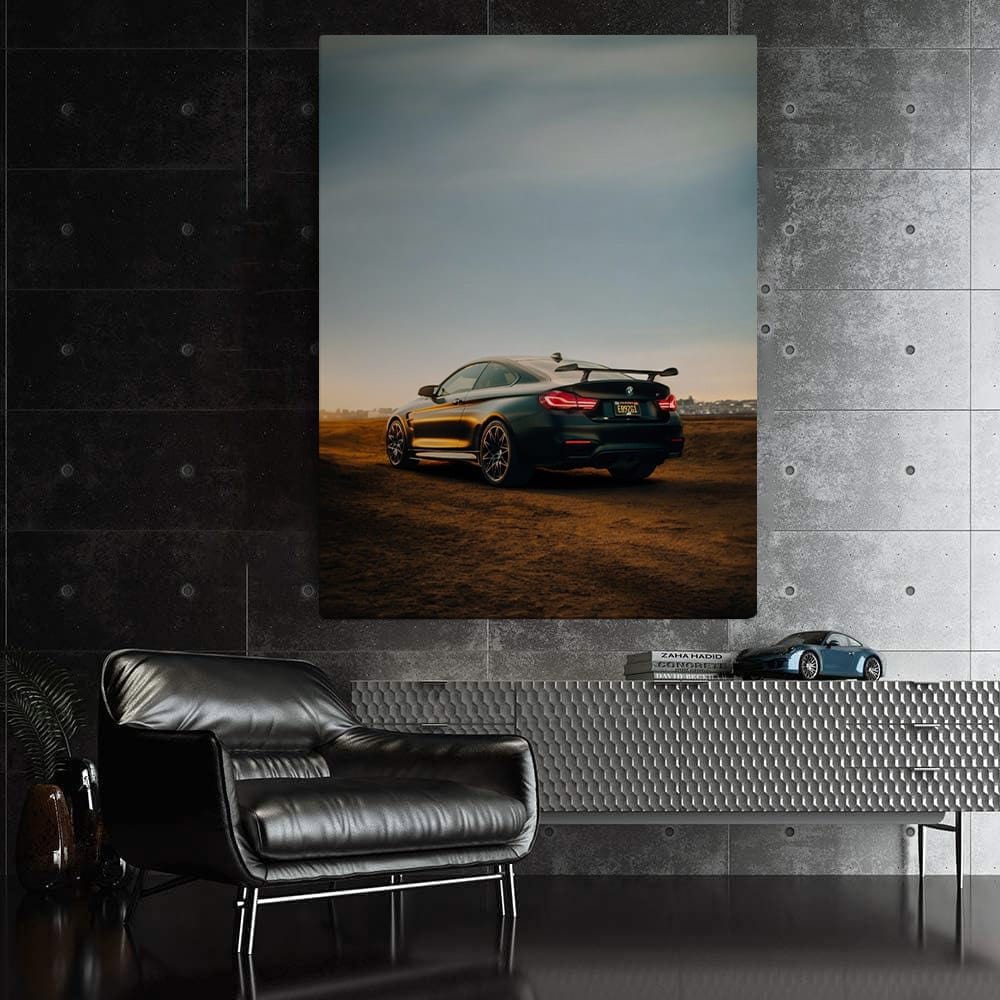 This painting is a blast! The BMW M4 in Frozen Black metallic looks like a beast on the poster. Wall art that any car fan would want to have in their garage. This is not just an image, but a real adrenaline rush on the wall. A dream on canvas! See more from the collection: BMW 4 Series Art