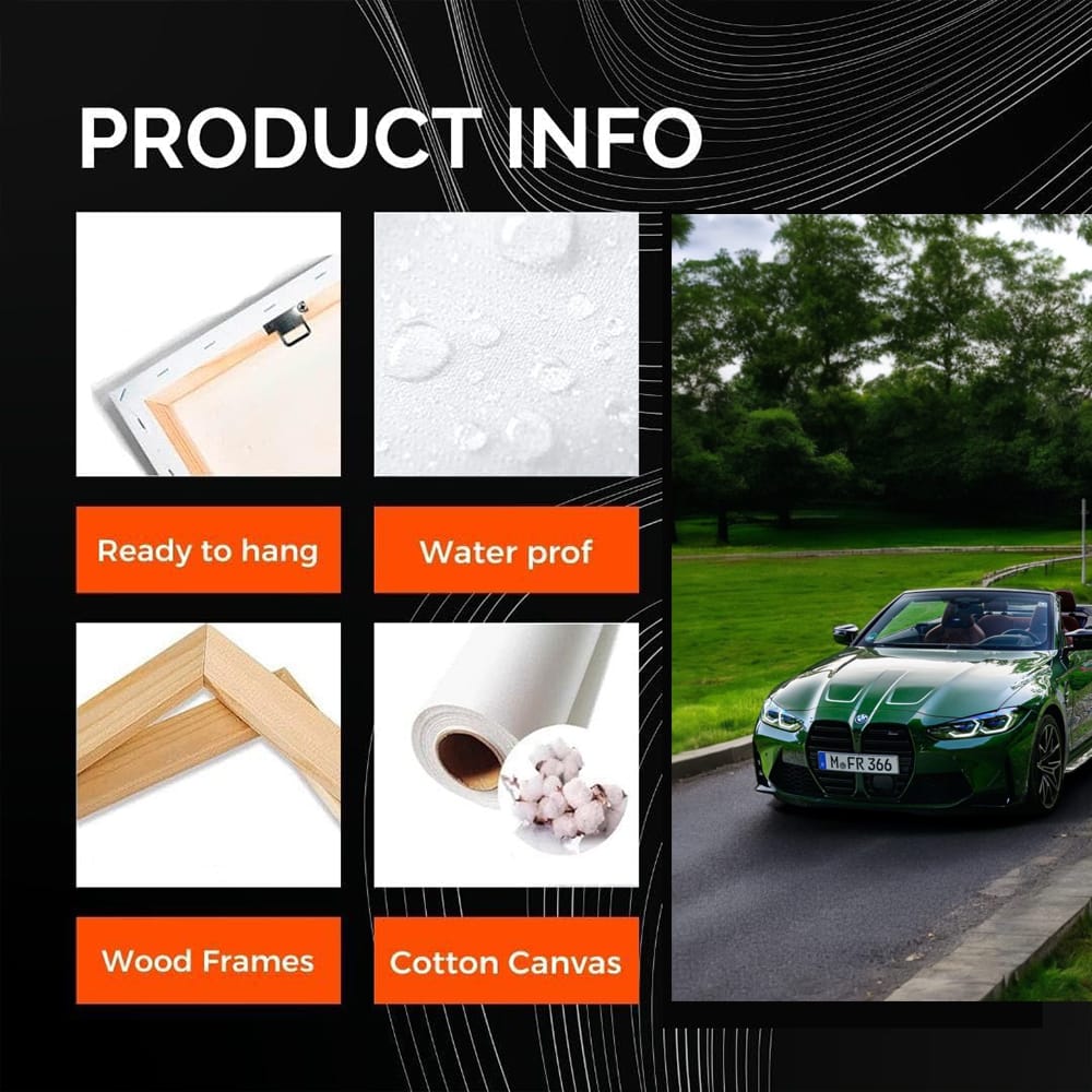 This poster is pure fire! BMW M4 G82 in green is just a bomb on the wall. A painting in the style of a daring Bimmer for those who breathe auto adrenaline. Wall art that will ignite a passion for speed and style. Your garage or room will now be in perfect order. See more from the collection: BMW 4 Series Art