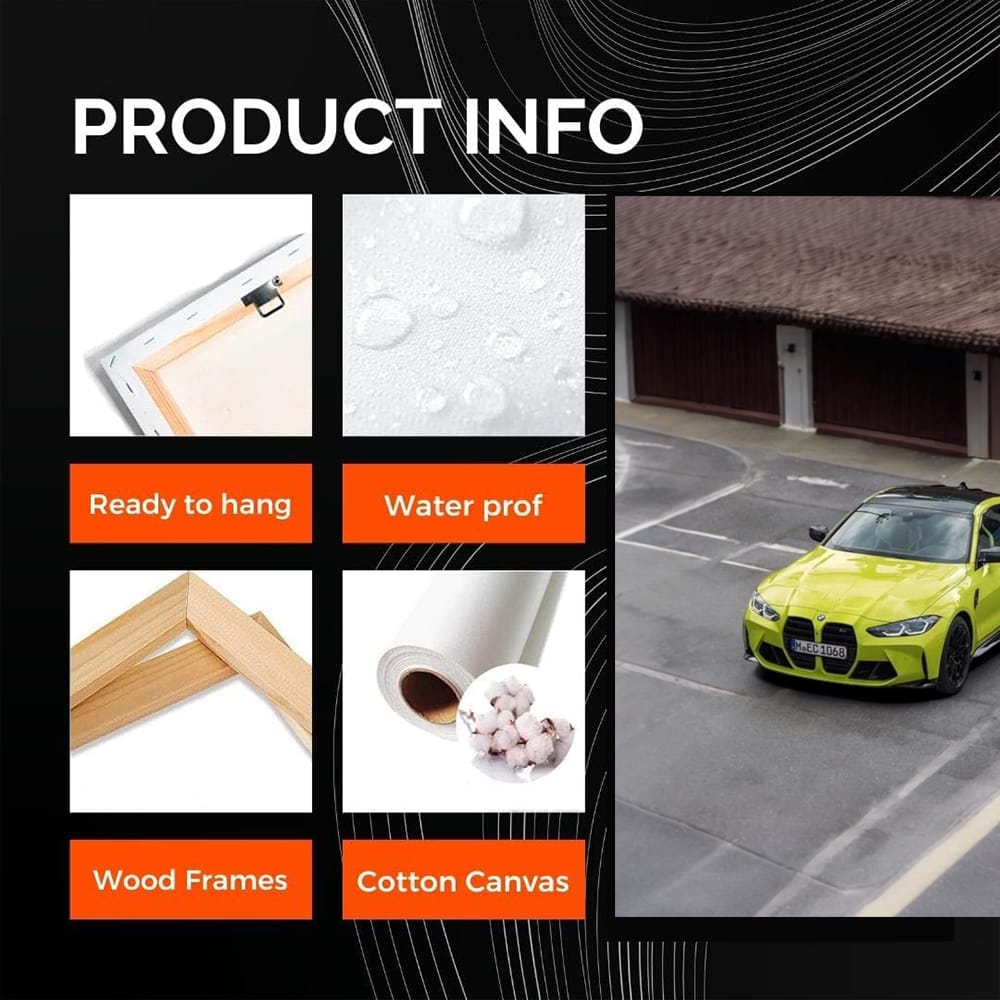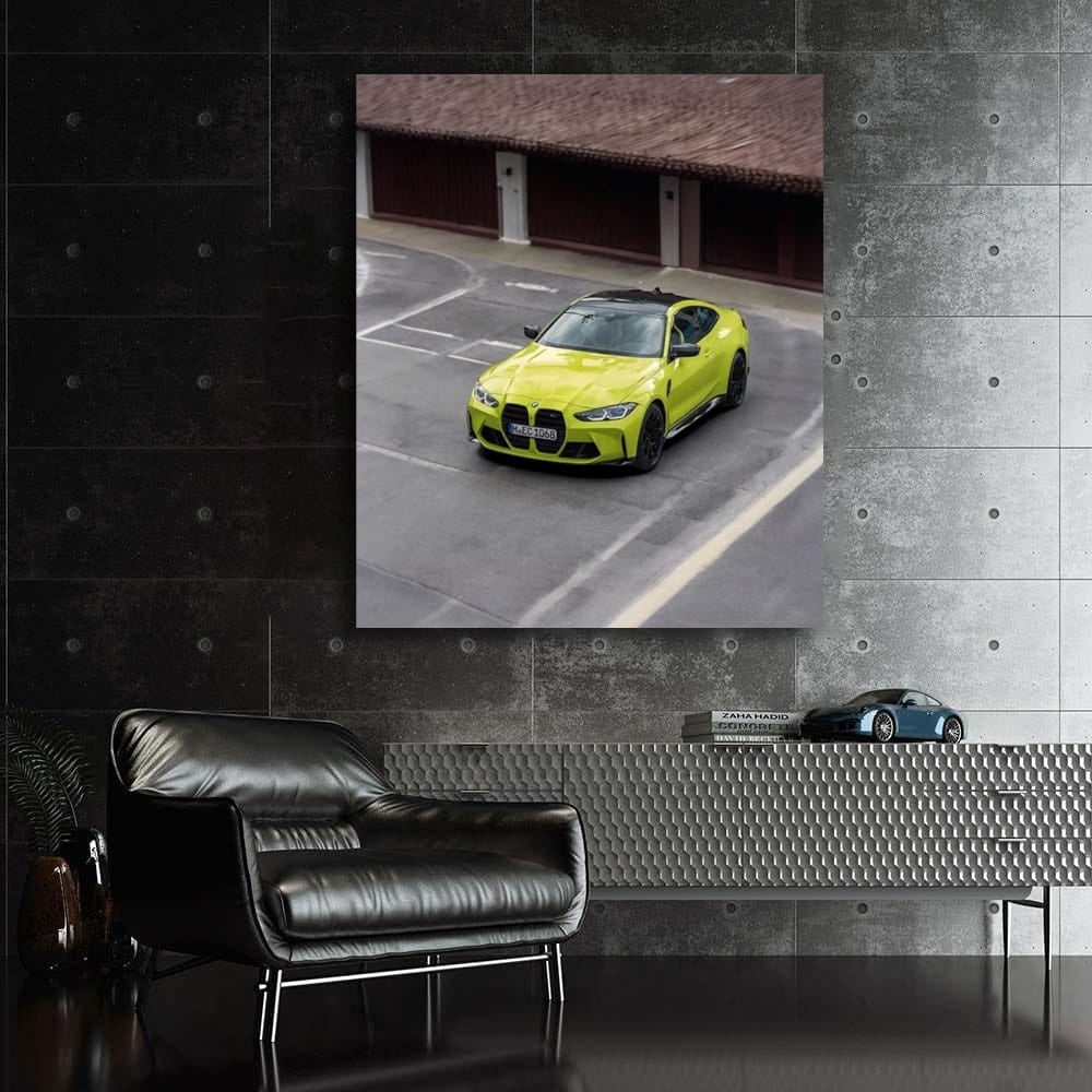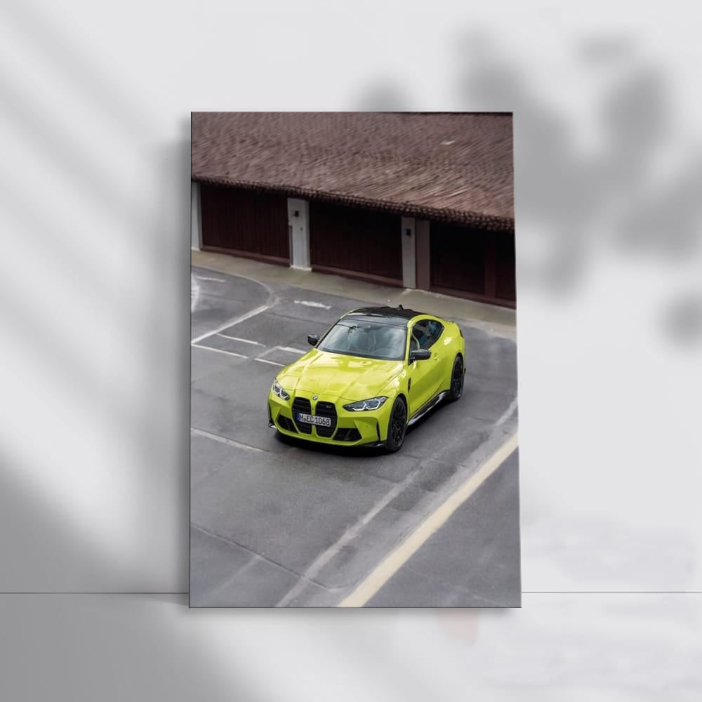 This BMW M4 Coupe Lime G82 poster is a true masterpiece of wall art for any car enthusiast's garage. The bright lemon color, aggressive lines and power oozing through the canvas. It's a piece of adrenaline that screams: "I'm here to tear up the asphalt!" See more from the collection: BMW 4 Series Art