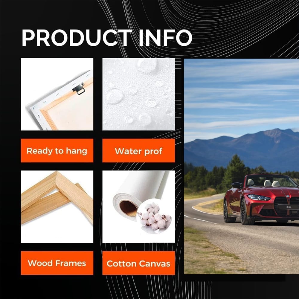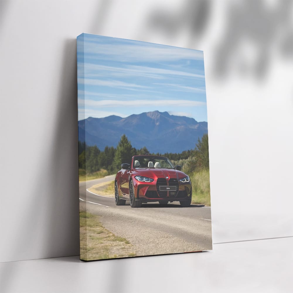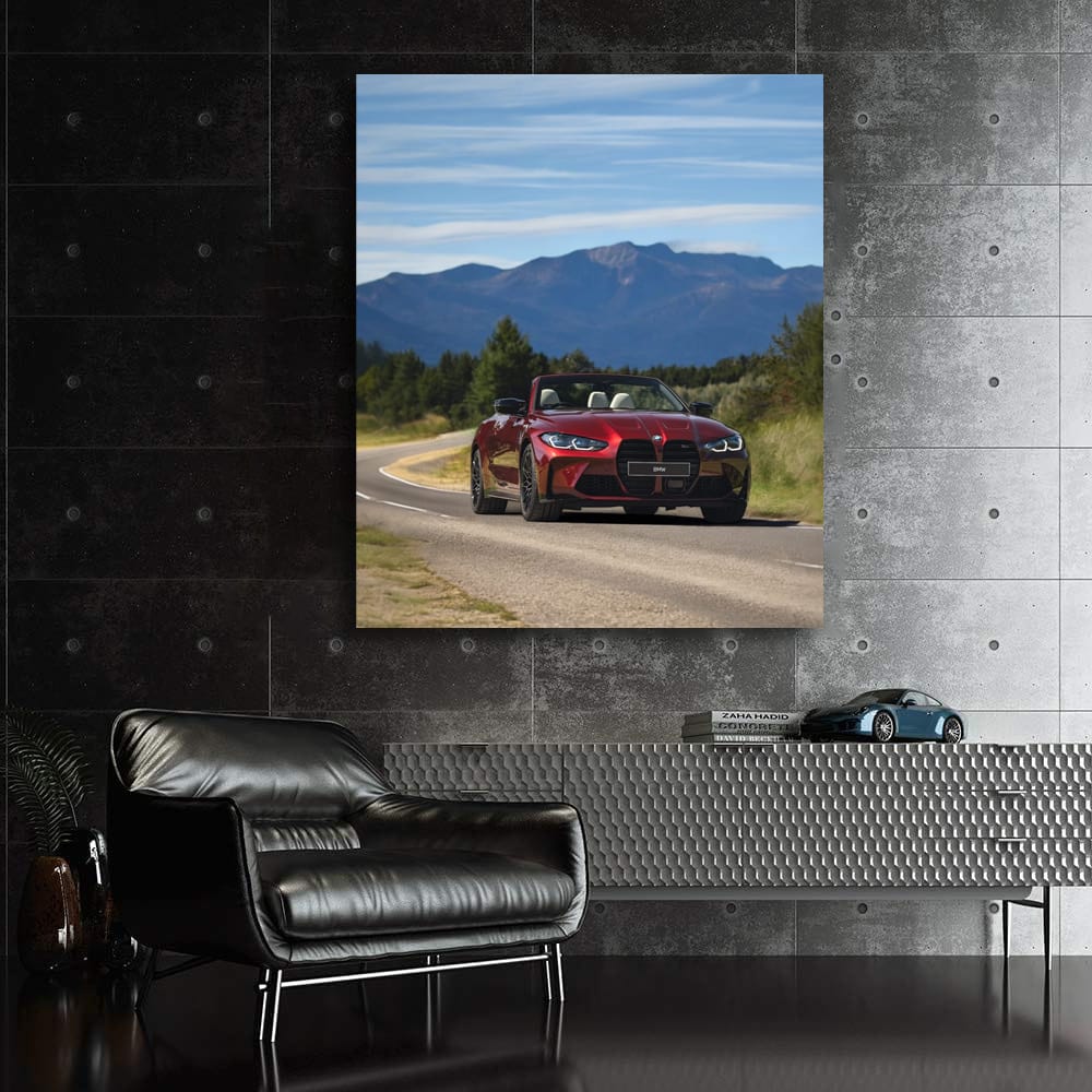 Hey, bro, look at this poster: a red BMW M4 G82 convertible with nature in the background. This wall art is like adrenaline in the blood. Such a painting on the wall is like the roar of the engine at the start. This is not just an image, but a real cult! See more from the collection: BMW 4 Series Art