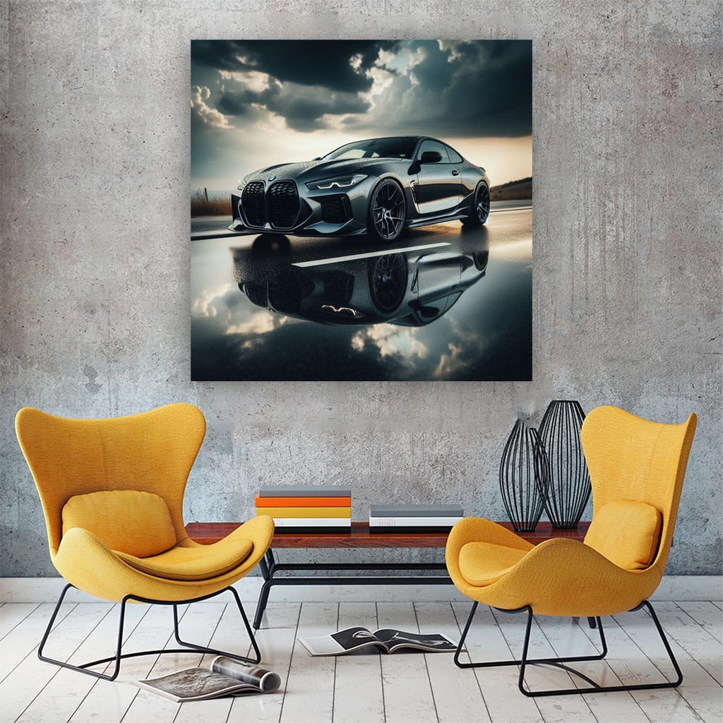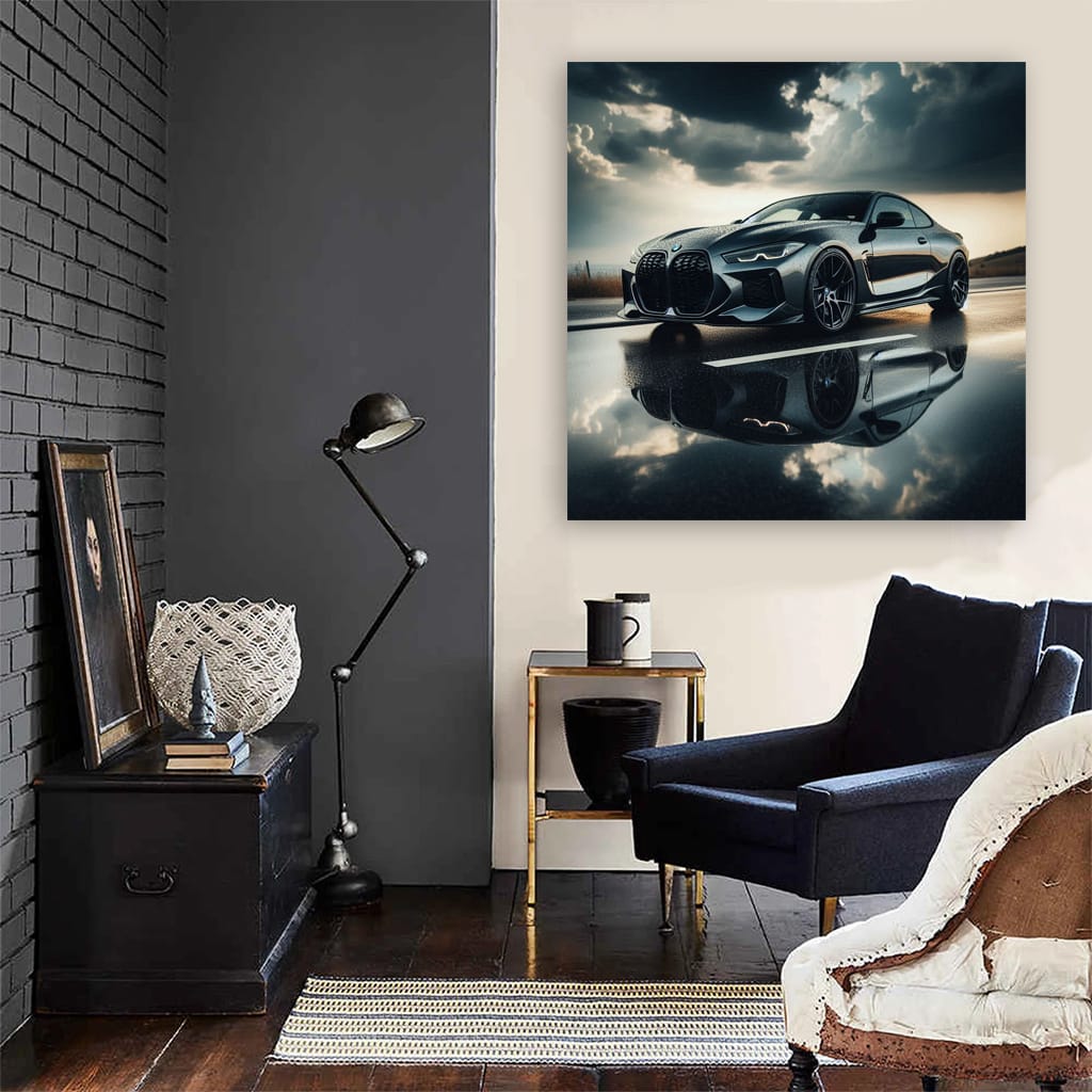 BMW M4 in Overcast Skies: Power Meets Elegance Wall Art