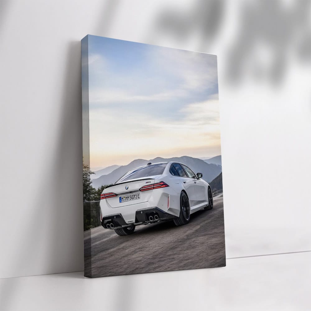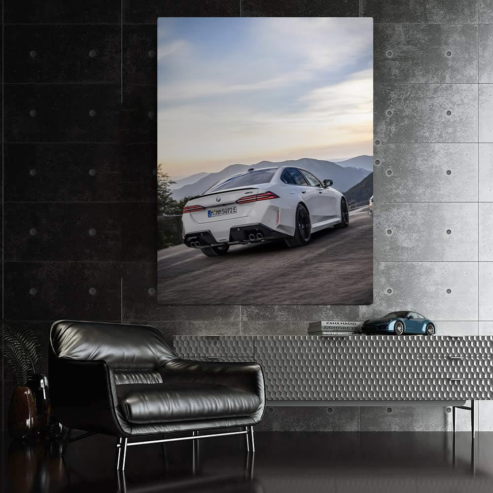 Imagine this poster: BMW M5 2025 against the backdrop of mountains, as if ready to tear up the asphalt. This car is a real beast, power and style in one bottle. The painting is just for those who breathe adrenaline and thirst for speed. Wall art that inspires feats and makes the heart beat faster. See more from the collection: BMW 5 Series Art