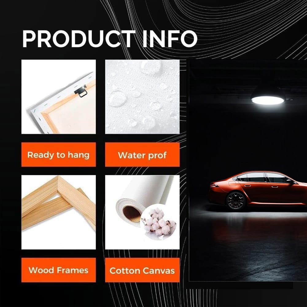 This is not just a poster, this is a bomb! The painting with BMW M5 in Frozen Orange metallic color is a real masterpiece of wall art. For car lovers, this is like a cult artifact. Such art on the wall immediately makes it clear: a true fan of speed and style lives here. See more from the collection: BMW 5 Series Art