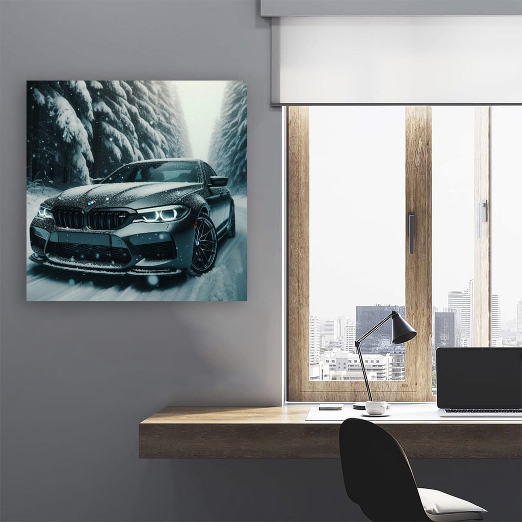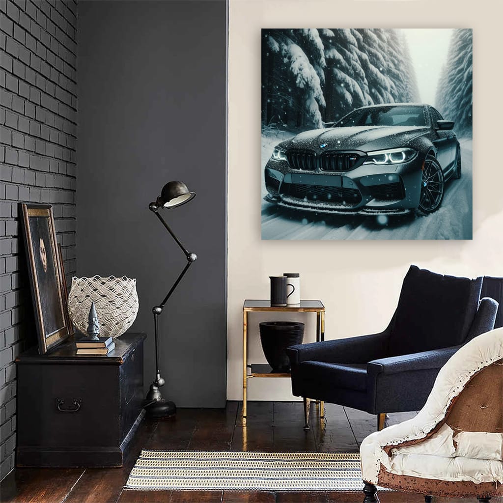BMW M5 in Snowfall - Power Meets Precision and Performance Wall Art