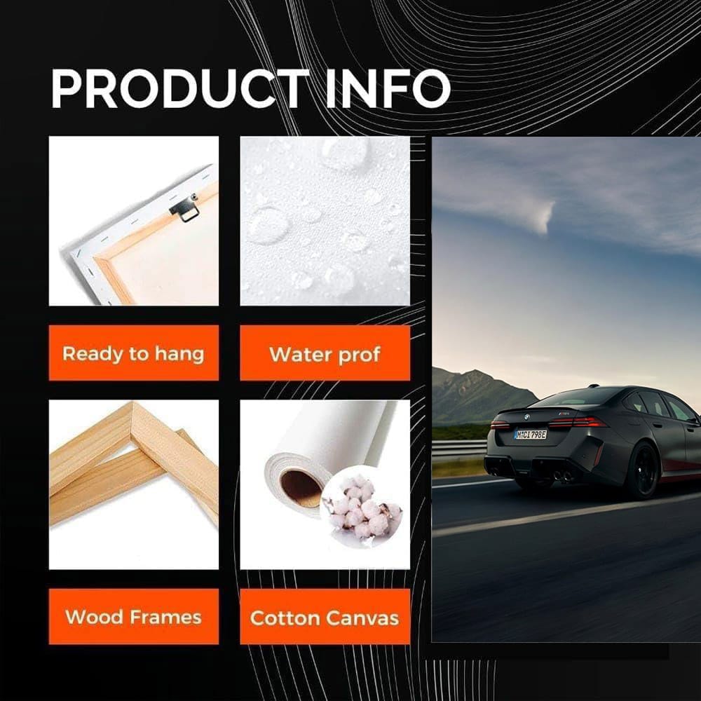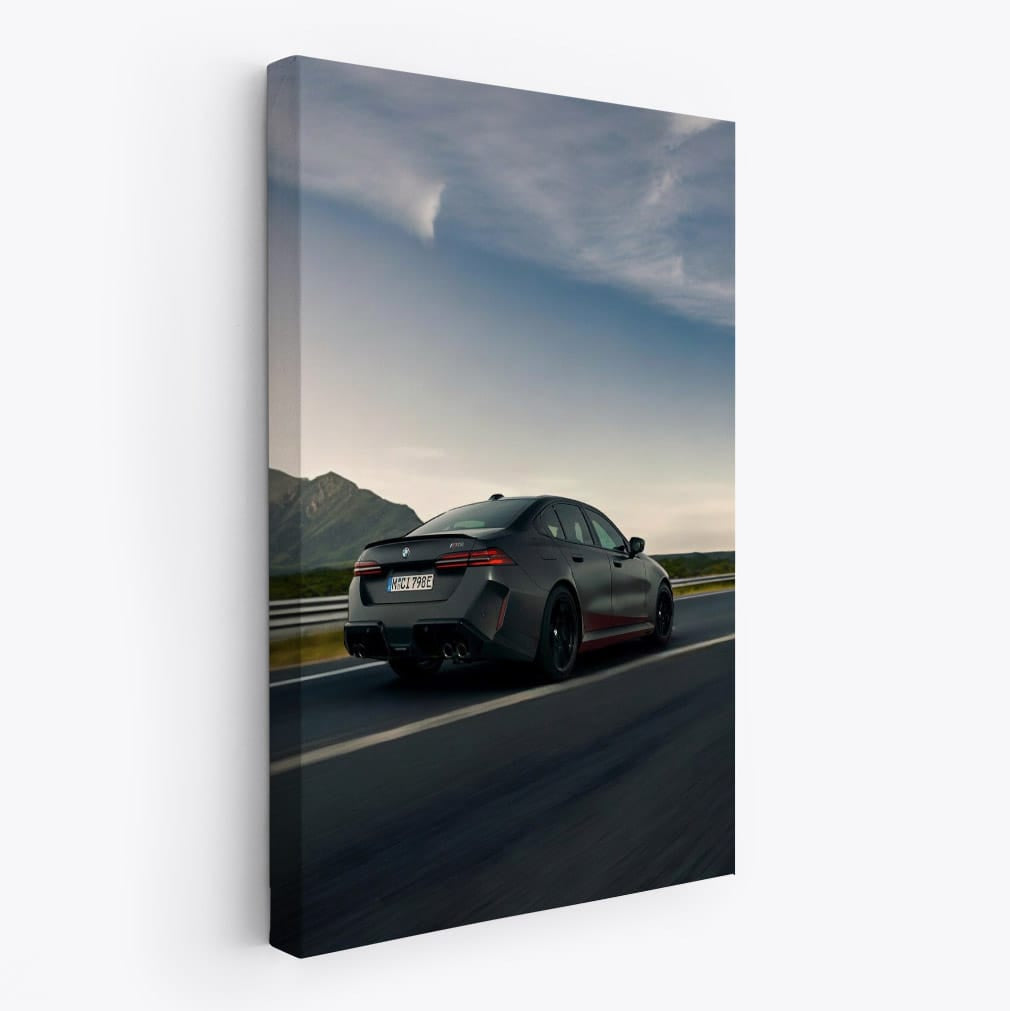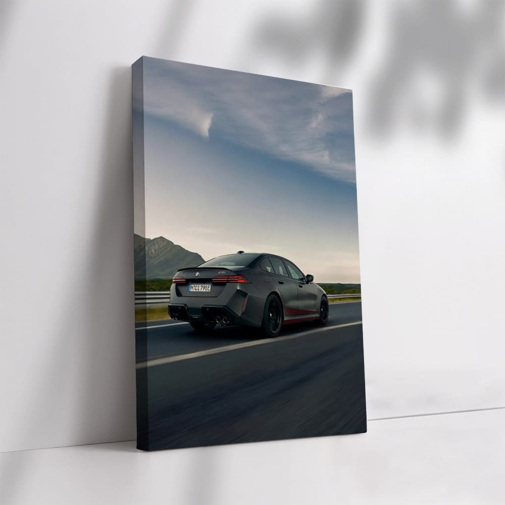 This poster is pure adrenaline on the wall! Grey BMW M5, like a bullet, ready to break away. painting for those who live for speed and love the roar of the engine. Such wall art is for true fans of cars and speed. See more from the collection: BMW 5 Series Art