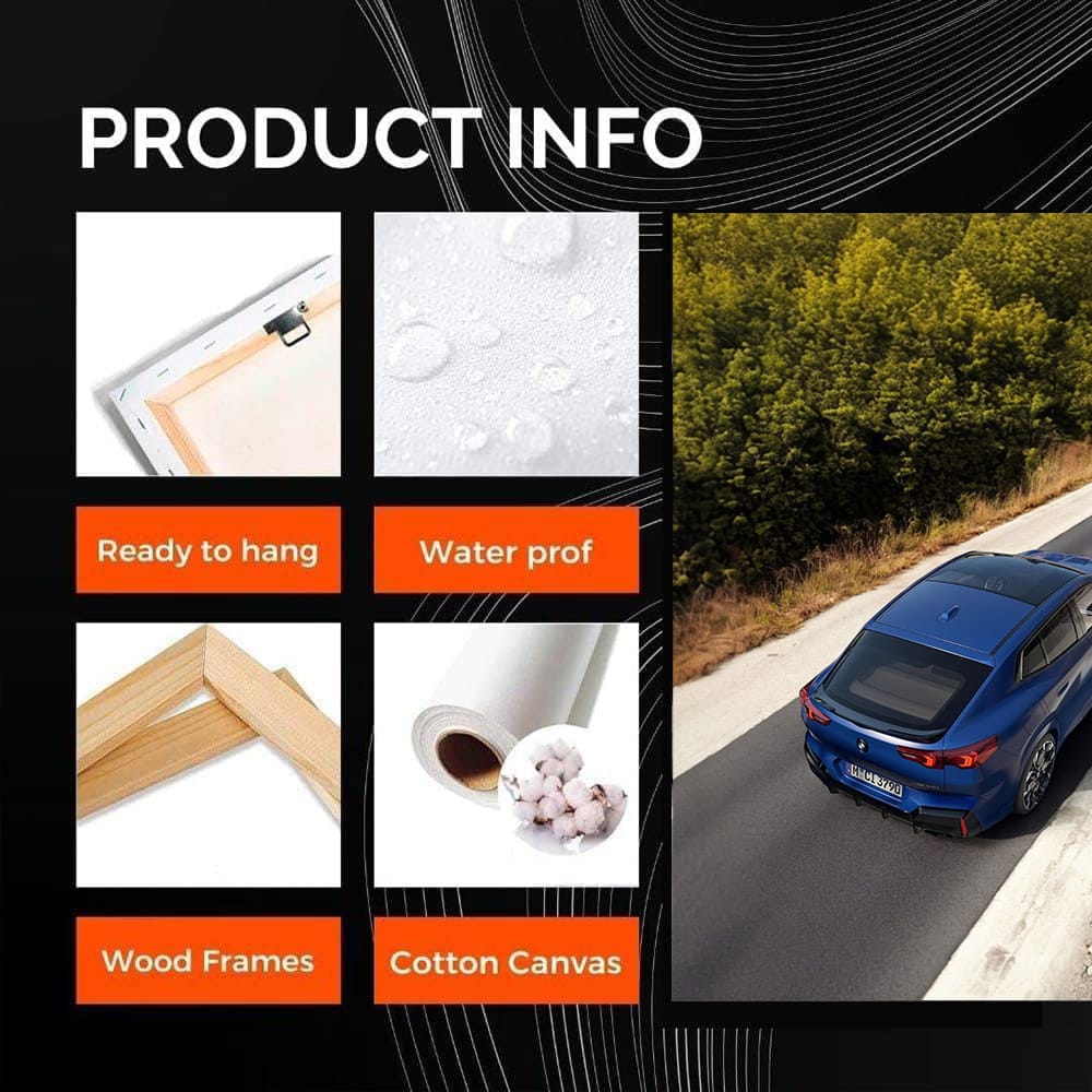 This wall art of BMW X2 M35i xDrive in blue is a poster for true connoisseurs of speed. This car is like a painting on the wall of the garage: an aggressive muzzle, power under the hood and style at the maximum. The perfect art for those who know a lot about iron horses. See more from the collection: BMW Art