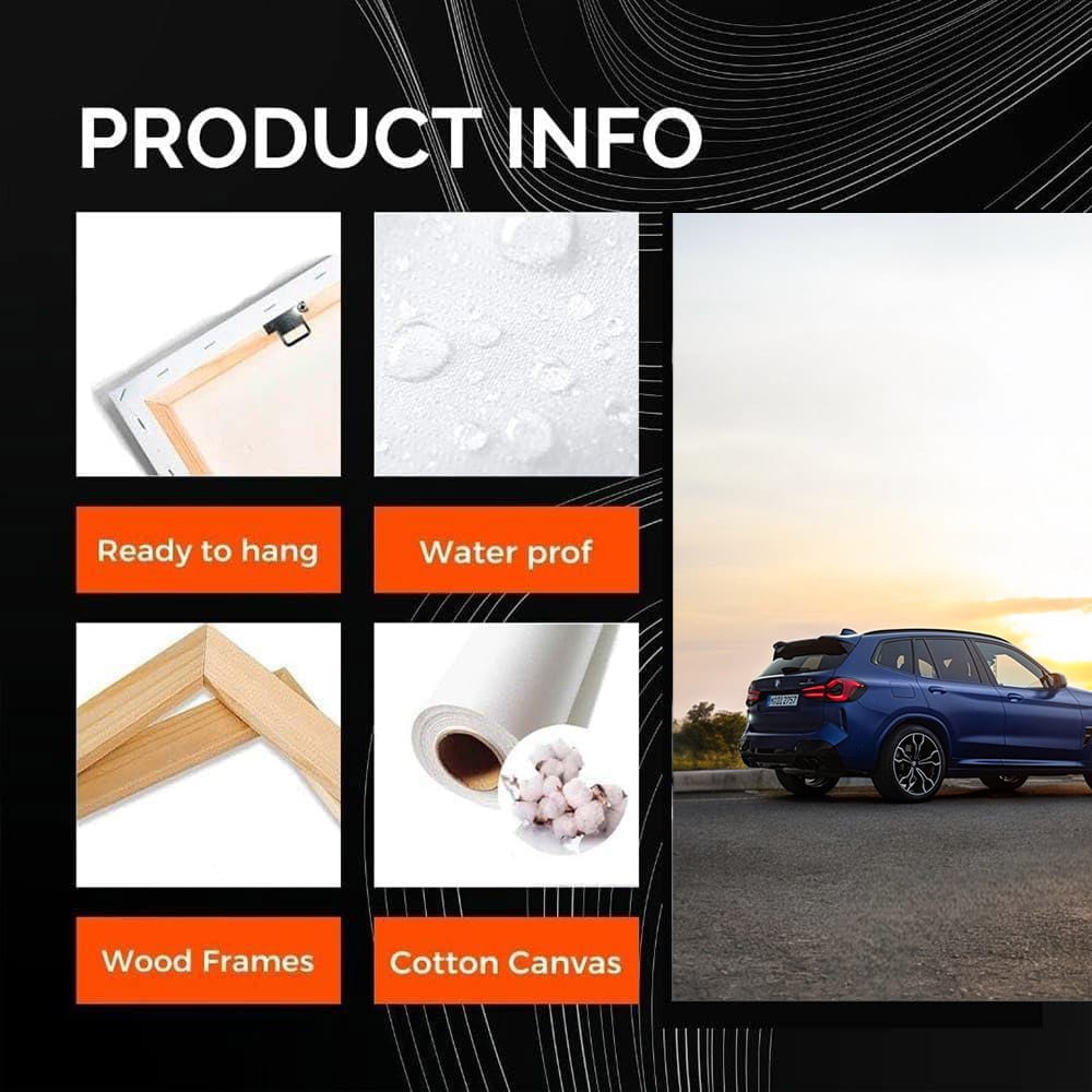 What a poster! BMW X3 M in lightning blue on the wall. This is not just a painting, but a piece of adrenaline in your room. Wall art that makes you want to get behind the wheel and press the pedal to the metal. A muscular beauty for true connoisseurs of speed. See more from the collection: BMW Art