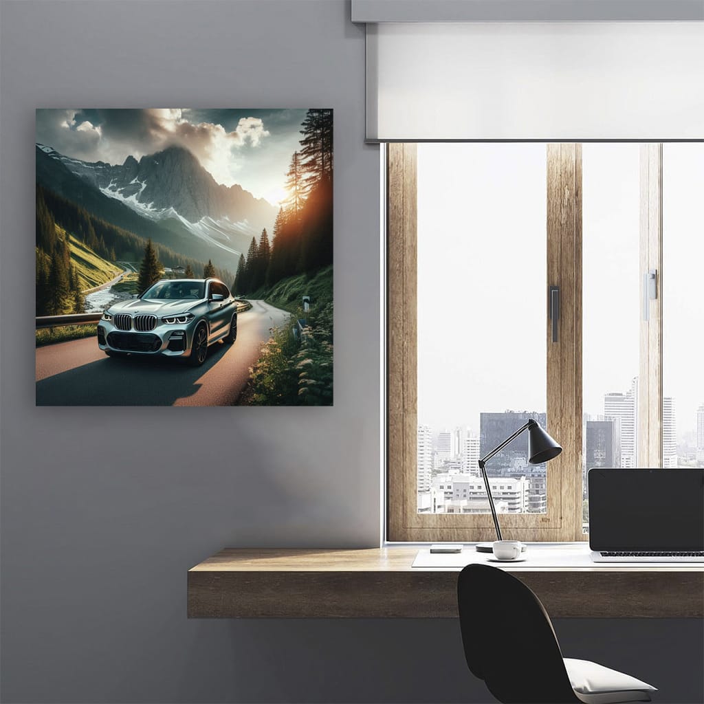 Oh man, this poster is like an adrenaline rush! BMW X3 with mountains in the background is pure drive. This is wall art for those who live life at full speed. A painting where the roar of the engine and the freedom of the road merge into one. Hang it up so that every day is a race. See more from the collection: BMW Art