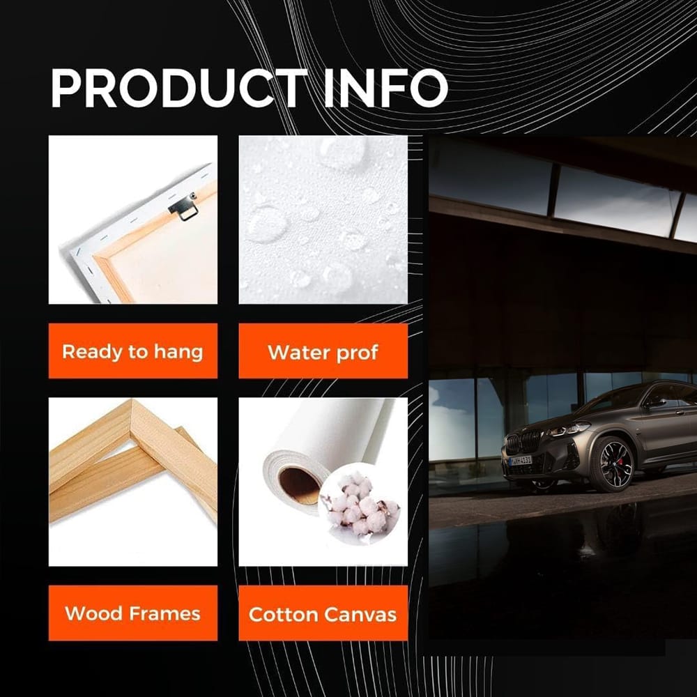Just look at this poster! Black BMW X4 G02 is a real beast on the wall. The painting screams with power and style. Wall art for true fans of speed and daring. It's like adrenaline that is always with you, even in your room! See more from the collection: BMW Art