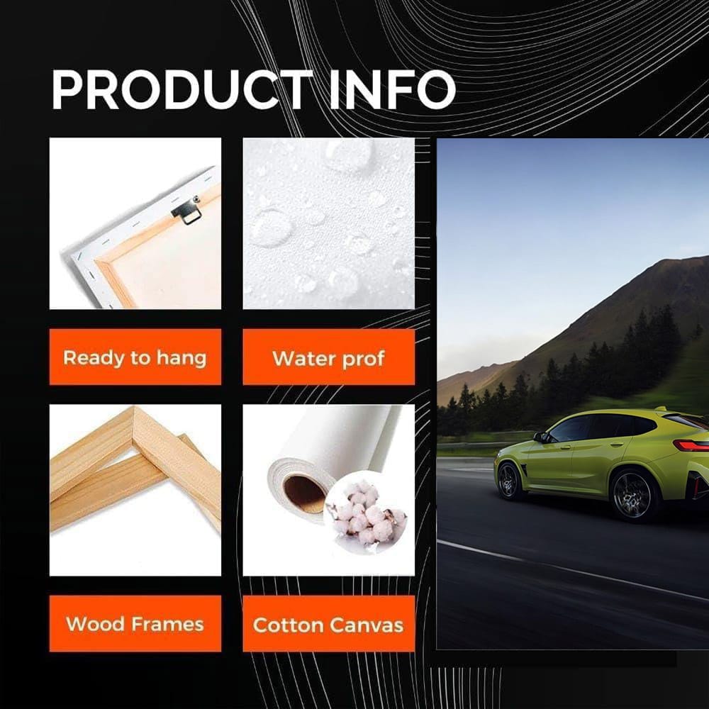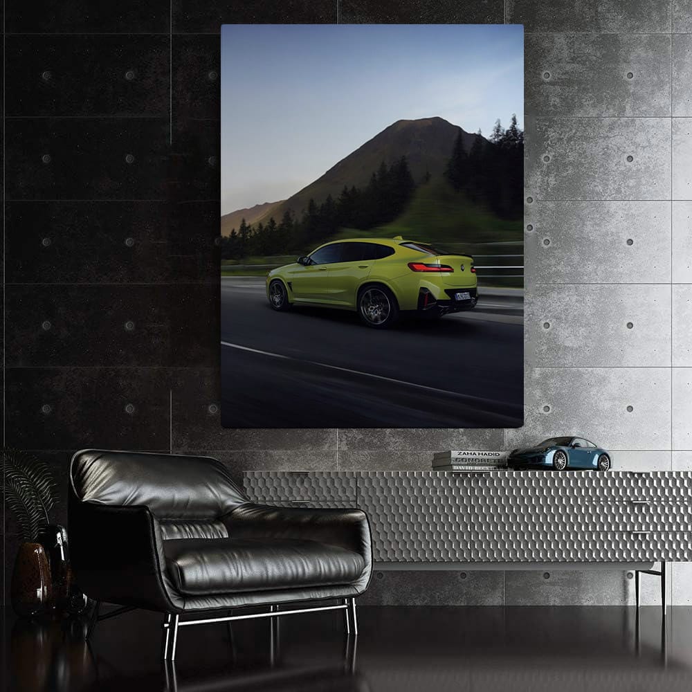 Dude, imagine a poster that blows your mind: BMW X4 M in furious yellow. This painting is pure adrenaline on the wall. Wall art for real car fans, where every line and curve says: "Ride me if you dare!" See more from the collection: BMW Art