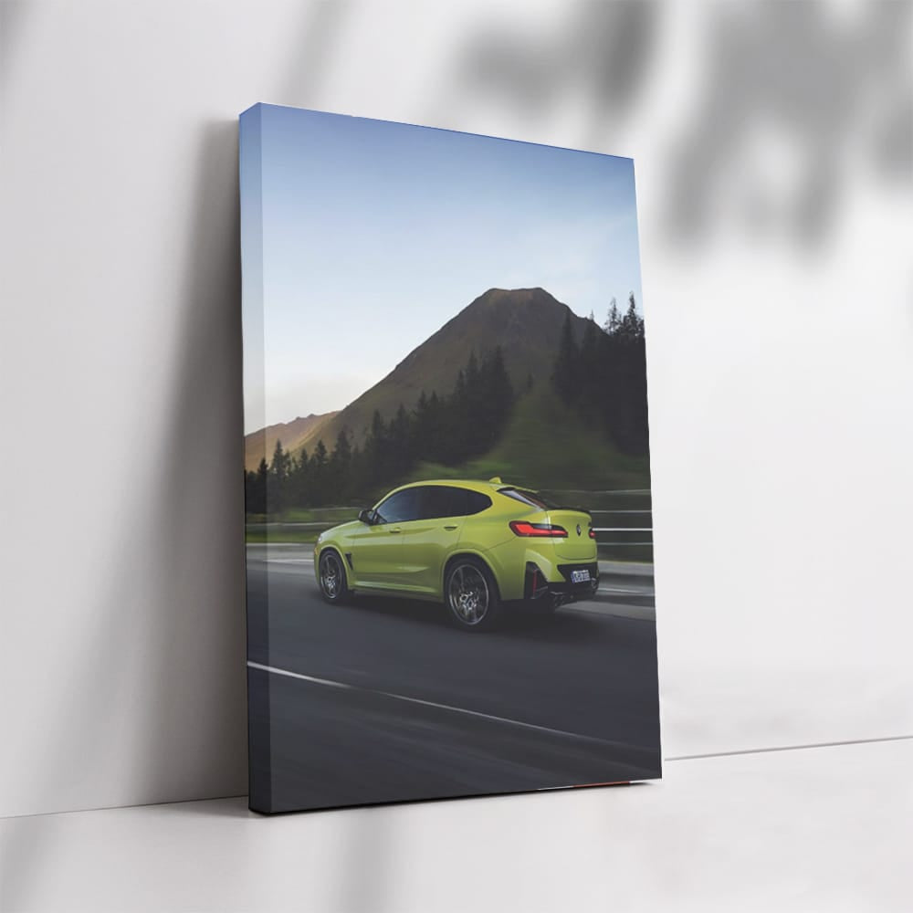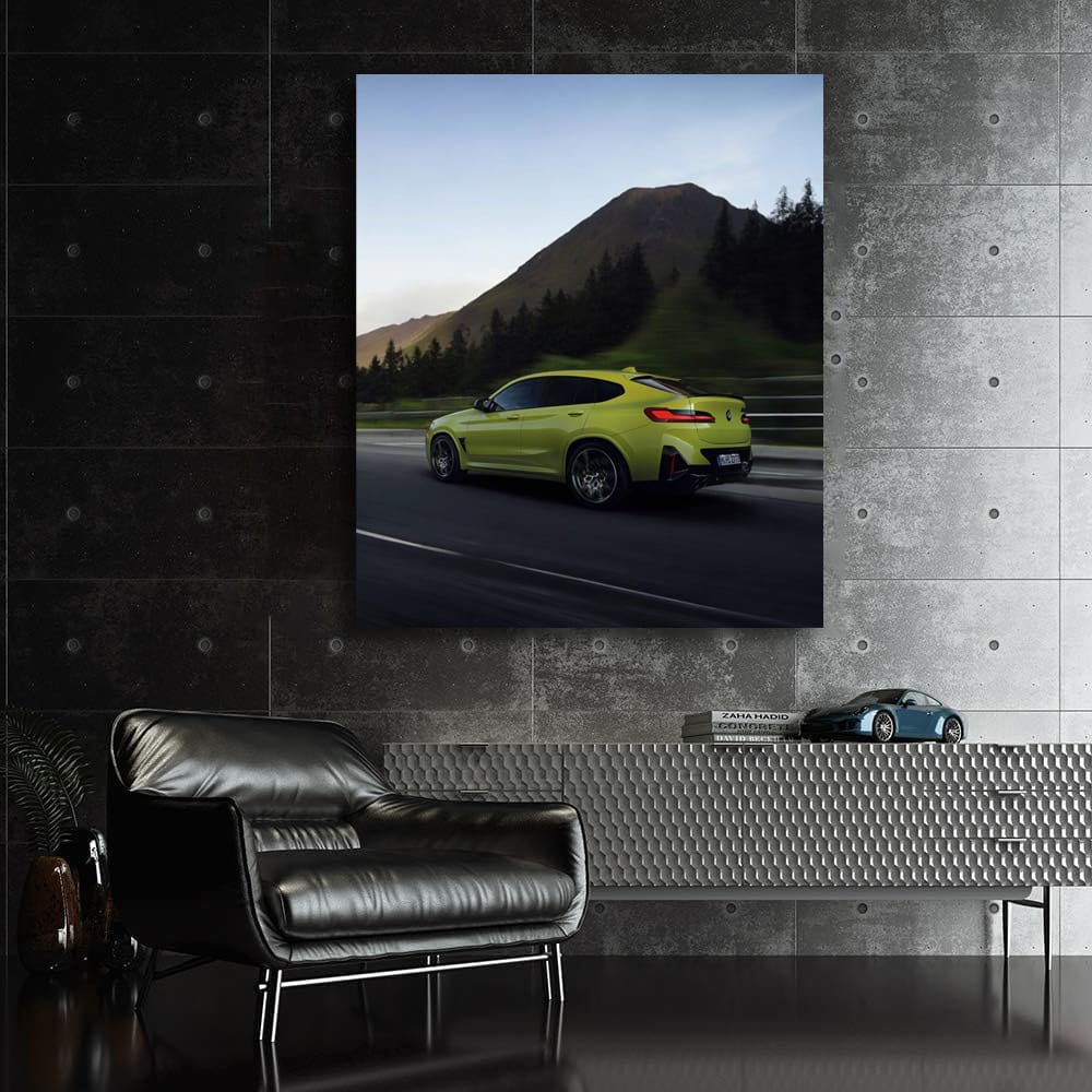 Hey, bro! Imagine you have a poster of a BMW X4 M in bright yellow hanging on your wall. This painting is just the bomb! Wall art for true connoisseurs of speed and drive. You look at it - and immediately want to press the pedal to the metal. See more from the collection: BMW Art