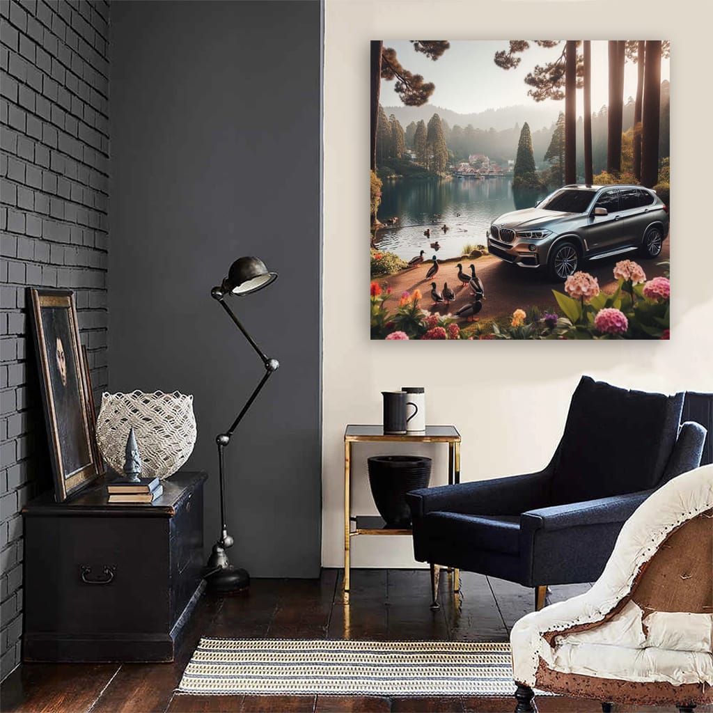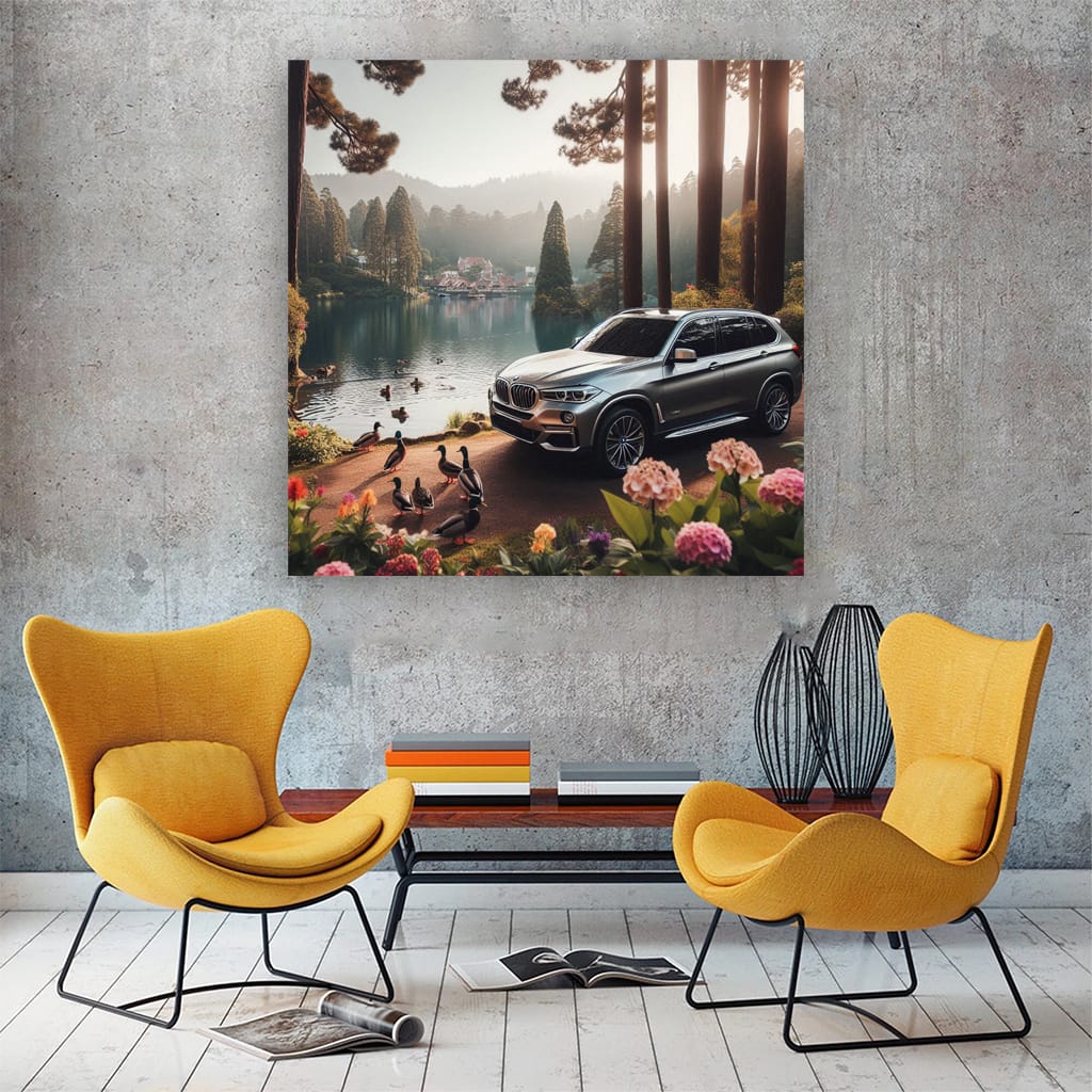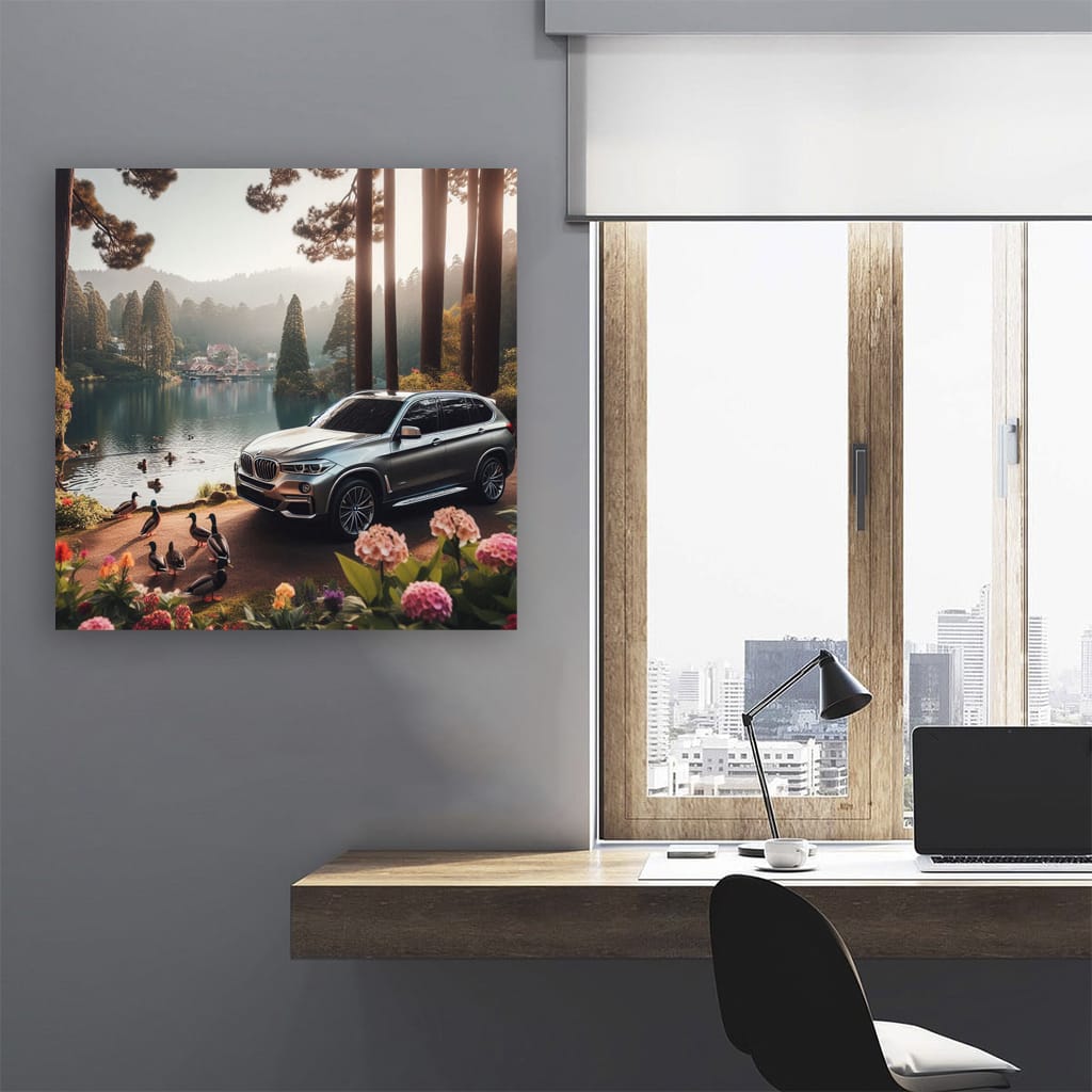 This painting is a real masterpiece for car lovers. BMW X5 by the lake is a dream on the wall. A poster for those who appreciate power and style. Wall art that makes hearts beat faster. It's like turbo acceleration in the world of decor, bro! See more from the collection: BMW Art
