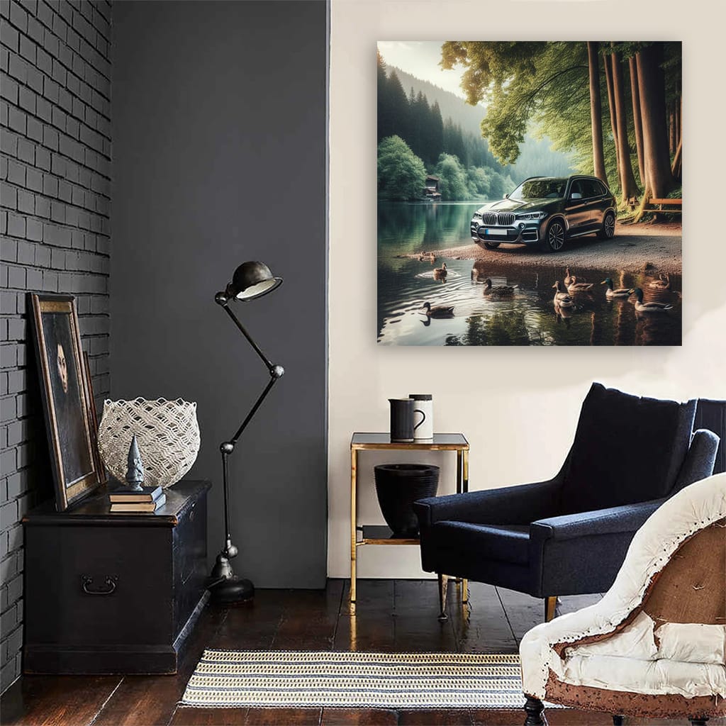 Imagine: you drive into a garage, and on the wall there is a poster of a brutal BMW racing through a raging river. This is not just a painting, this is wall art for car fans. Every line and splash of water is real adrenaline on canvas. See more from the collection: BMW Art