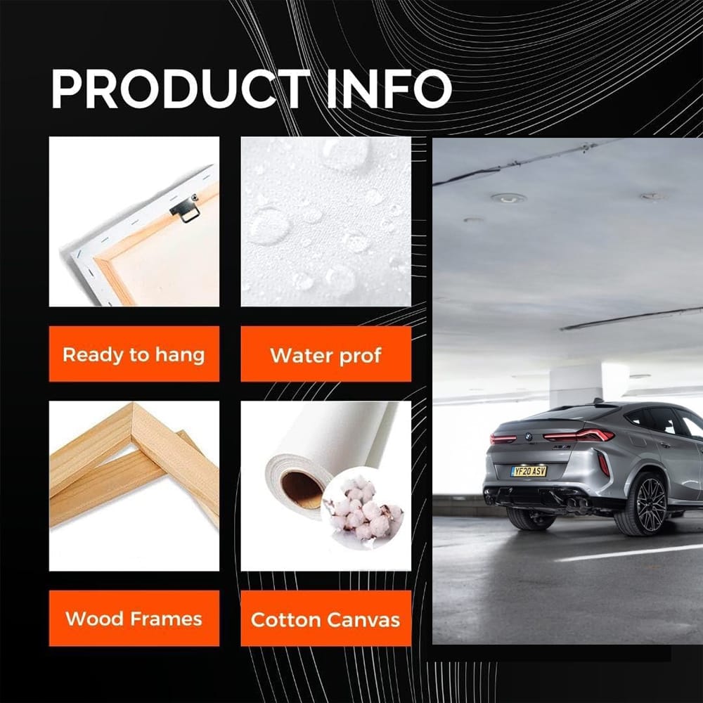 Hey bro, have you seen the new BMW X6 poster? This painting is a blast! The grey beast on the wall art looks like it's ready to break out of the frame and hit the track. This poster is a must-have for any self-respecting car fan! See more from the collection: BMW Art