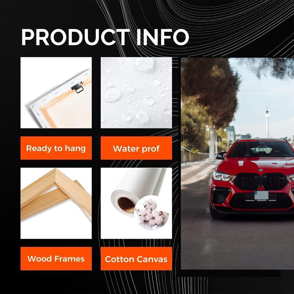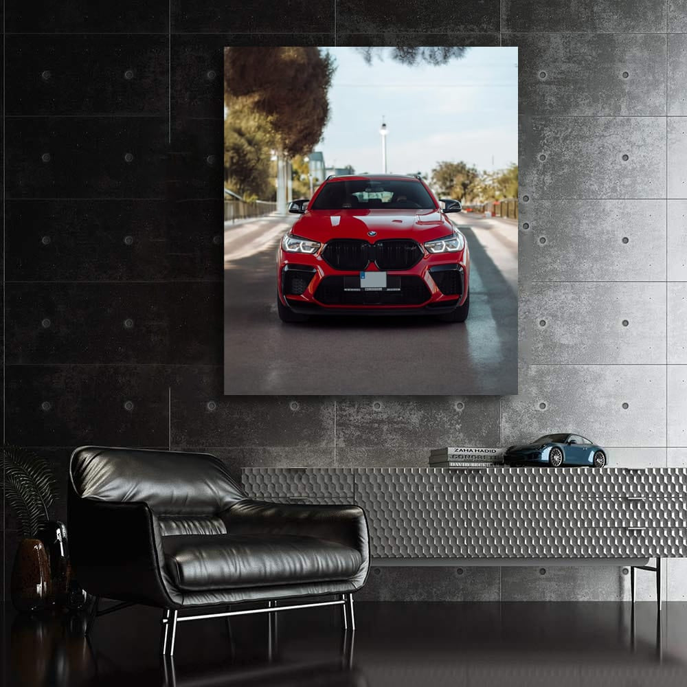 Pure bliss! The poster features a red BMW X6 M, like the cherry on the cake. This painting is just fire, as if the beast itself is bursting from the wall art into the real world. Power, style and speed – all in one frame. This art is a must-have for any car fan! See more from the collection: BMW Art