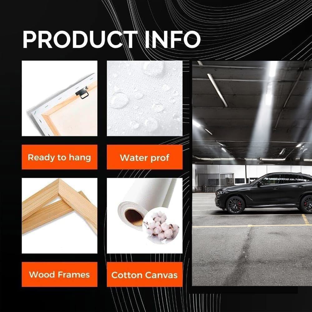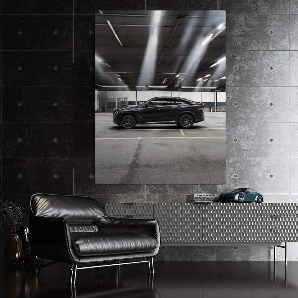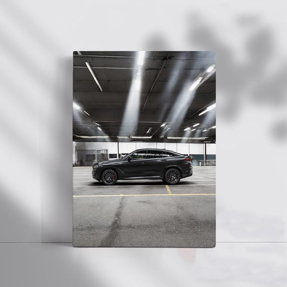 This BMW X6 Black Vermilion Edition poster is just fire! The painting is like a car fan's dream: a black predator on the wall, ready to tear up the asphalt. Wall art for those who know a lot about power and style. This car is a symbol of daring drive and aggressive luxury. See more from the collection: BMW Art