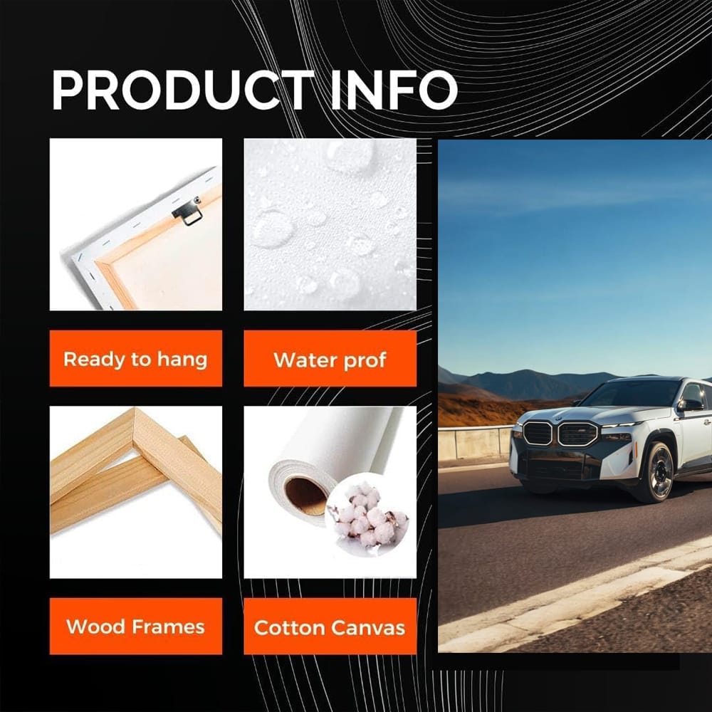 Dude, look at this poster of a BMW XM speeding down the highway - just the bomb! This is wall art that will take your breath away. In short, this painting is worthy of the wall of any garage that appreciates real cars. A real car fan's dream, not just a painting on the wall! See more from the collection: BMW Art