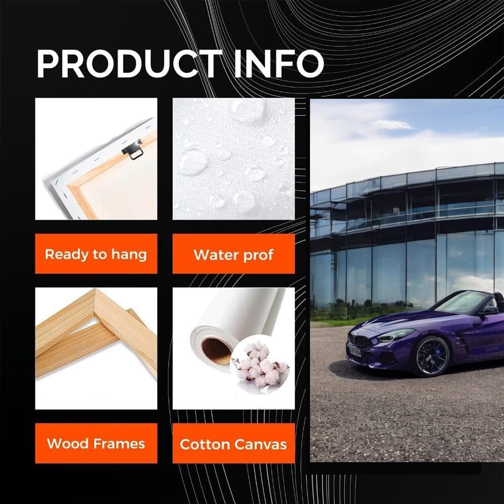 This poster is a real bomb! Purple BMW Z4 as wall art makes the hearts of car fans beat faster. The painting breathes power and speed, as if you are on the runway. Wall art for those who live life to the max! See more from the collection: BMW Art