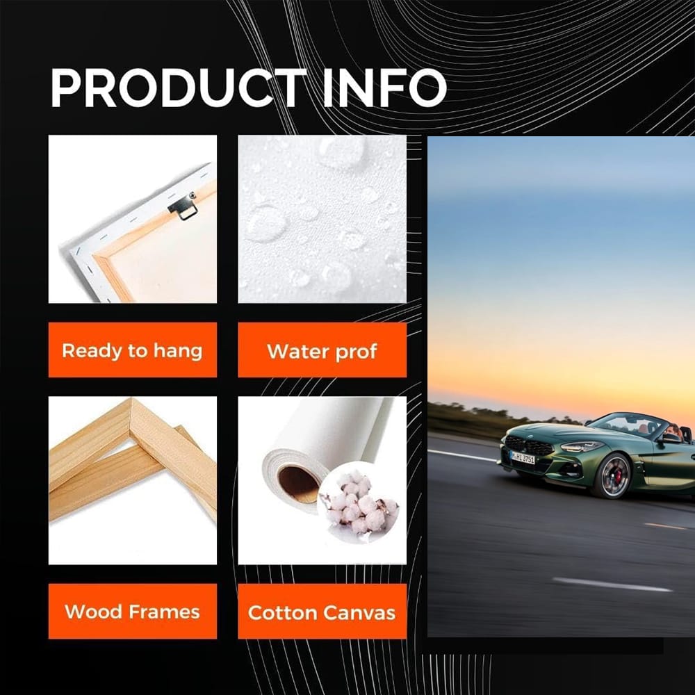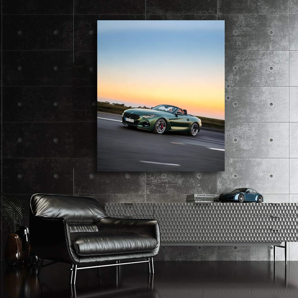 This poster of BMW Z4 M40i in bold green is a real bomb for the guys who are into it. A painting that hangs on the wall your passion for speed and style. Wall art that says: "I live life to the max." See more from the collection: BMW Art