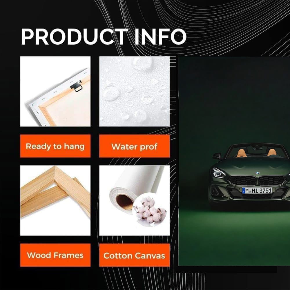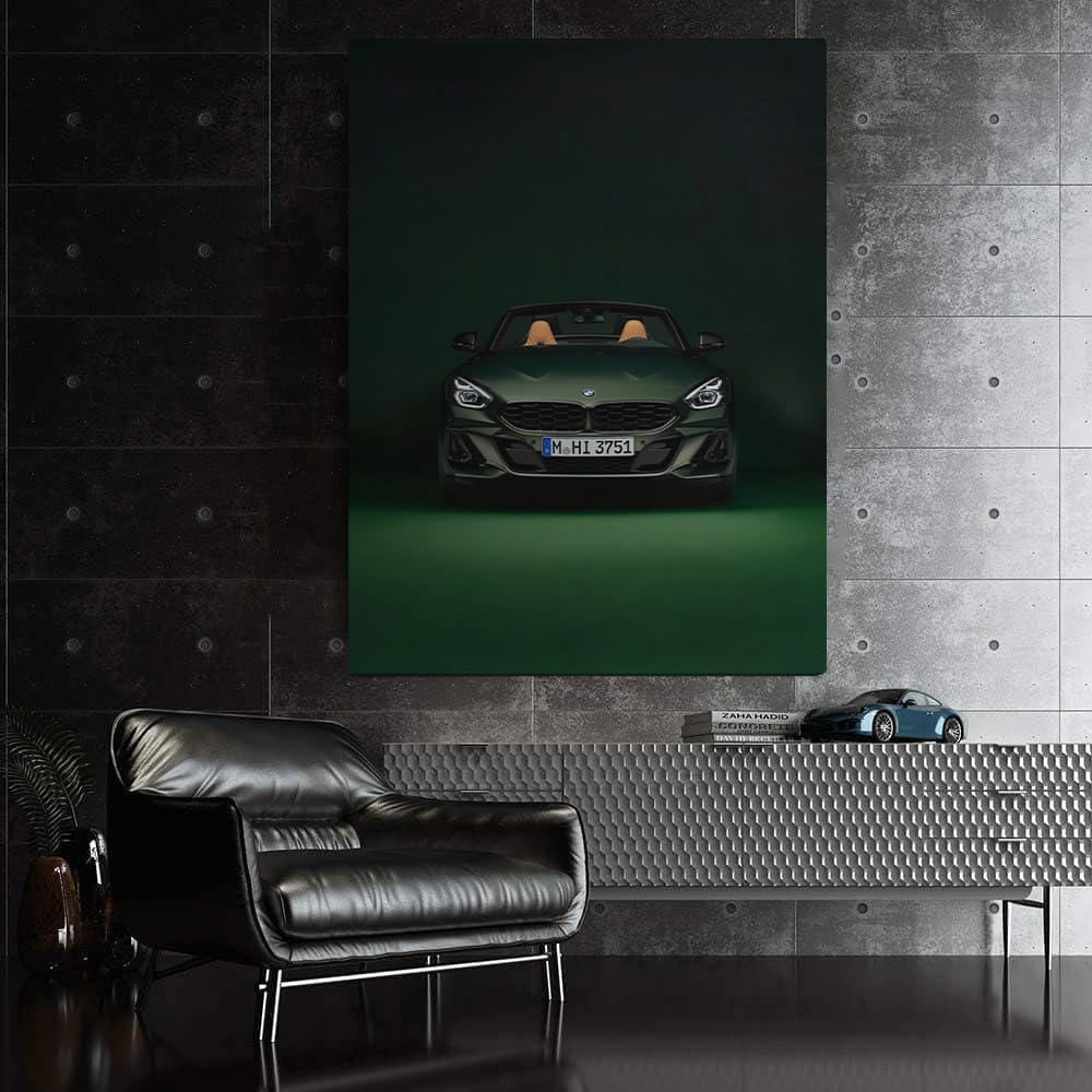This poster is pure adrenaline. The BMW Z4 M40i Pure Impulse edition in the painting is not just wall art, it is a challenge to speed! Green lightning in the world of cars, bold and powerful. Just look and feel the roar of the engine that calls forward. See more from the collection: BMW Art