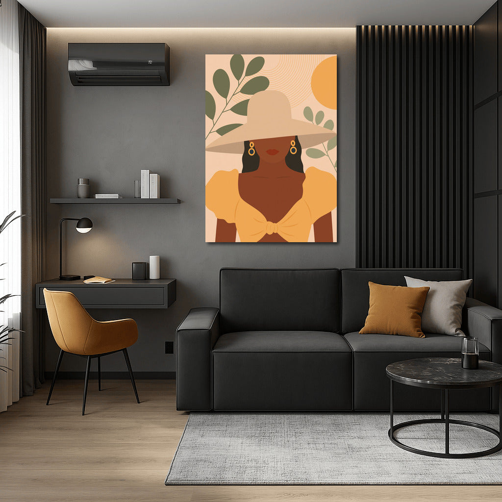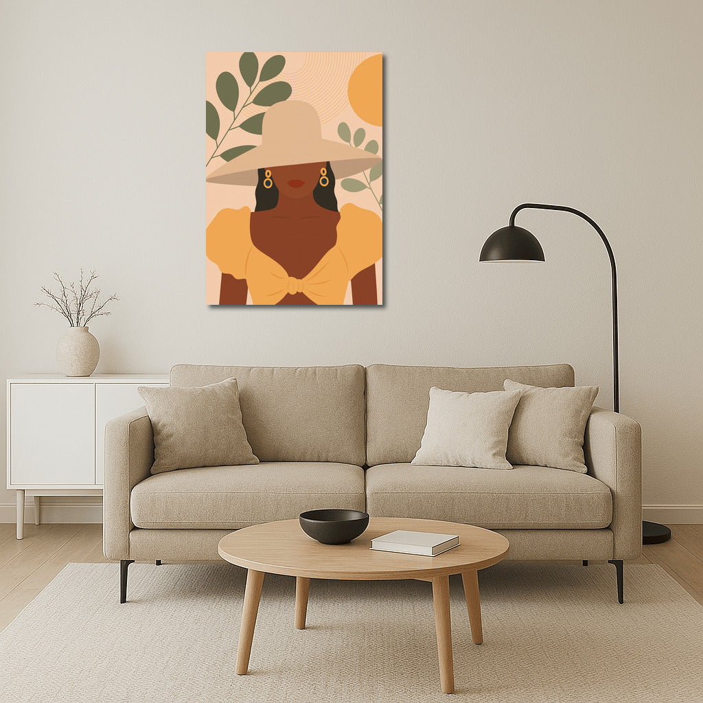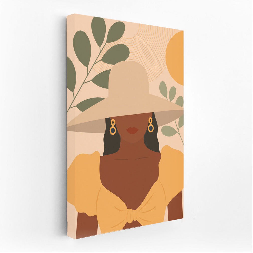 Bohemian Muse: Woman in a Hat Among Leaves and Sun Wall Art