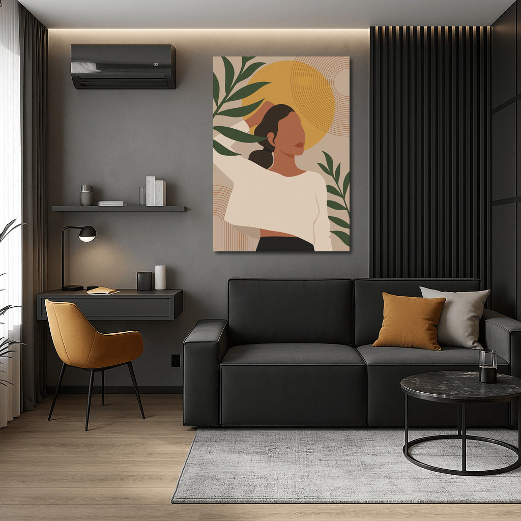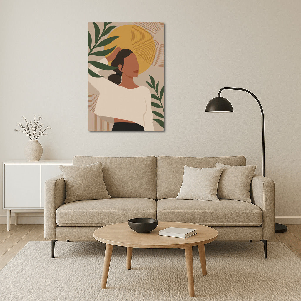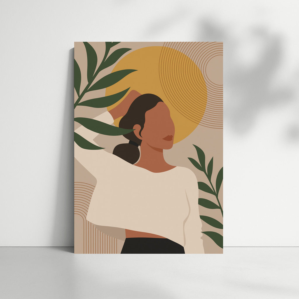 Cozy boho atmosphere: warm tones, natural motifs and a mysterious figure create harmony for your wall. See more from the collection: Boho / Bohemian Style Art