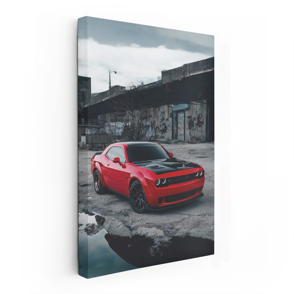 Bold Red Dodge Charger in Urban Style - Power and Flair Wall Art